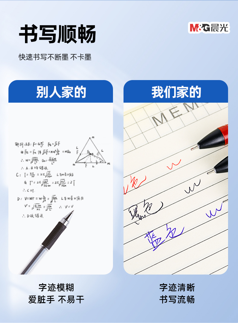 晨光、圆珠笔、按压式、0.7mm、学生专用、多色彩