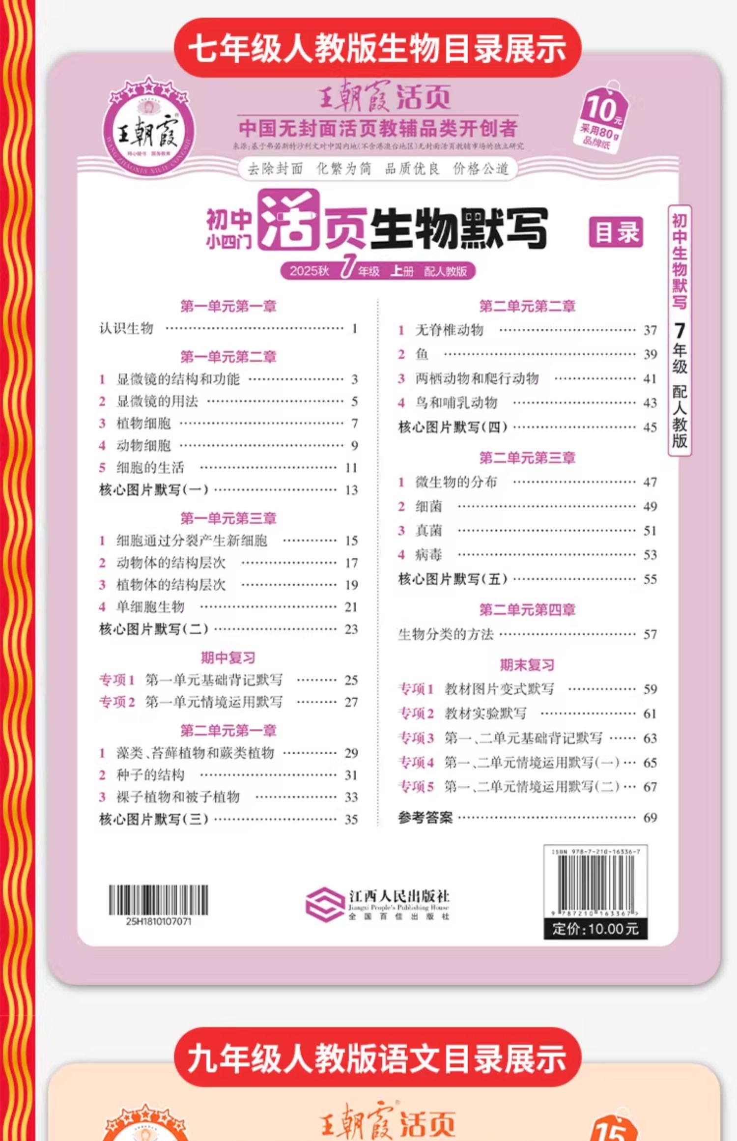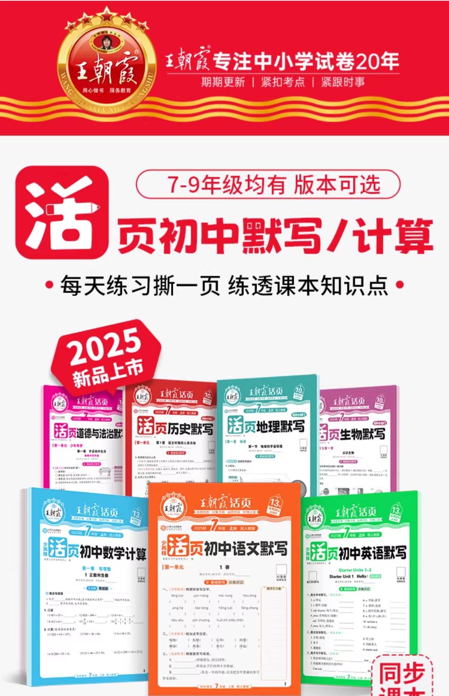 2025秋王朝霞活页默写初中小四门七八九年级上册政治历史地理生物人教版初一二三小四科语数英课本同步练习册试卷基础知识复习资料