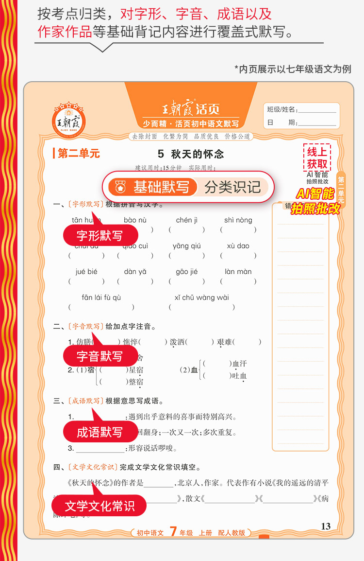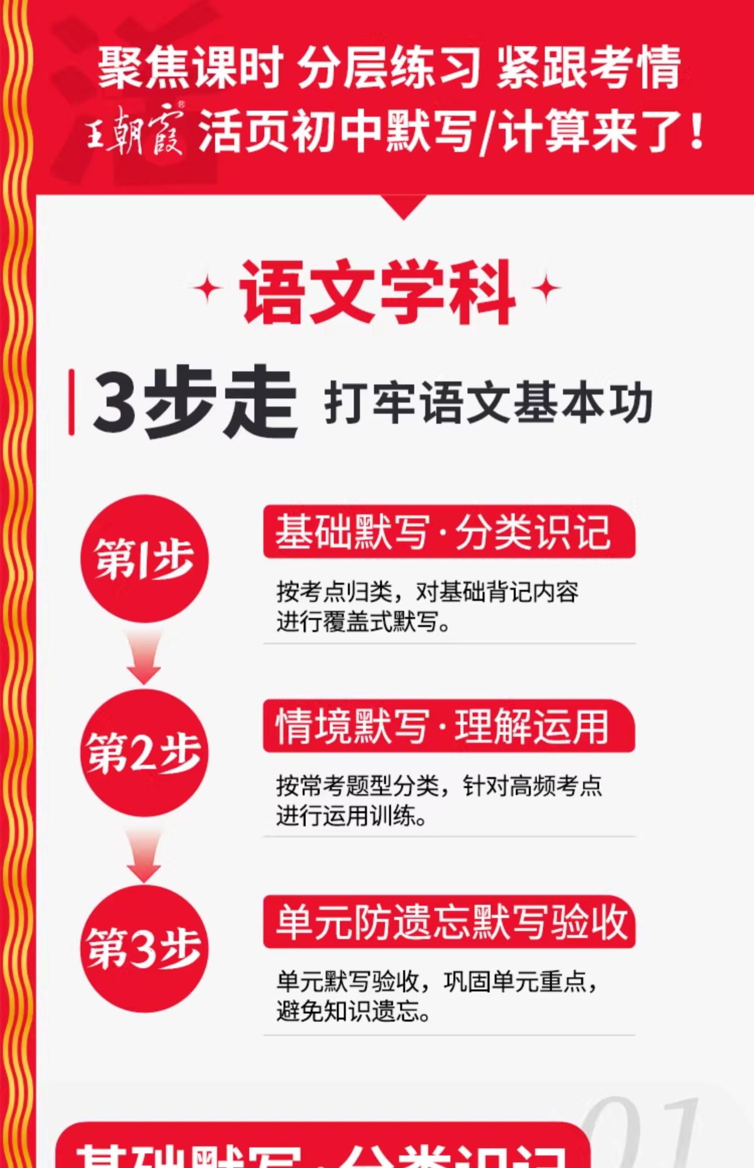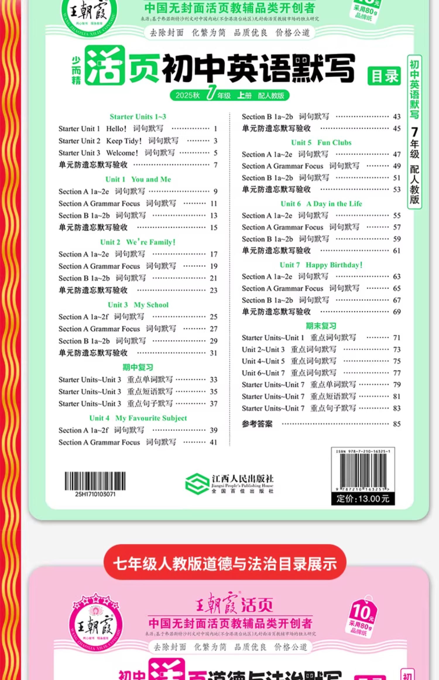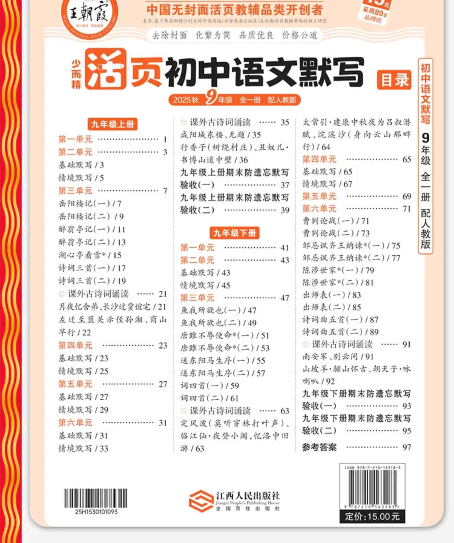 2025秋、王朝霞活页默写、初中小四门、七八九年级、人教版、课本同步、复习资料