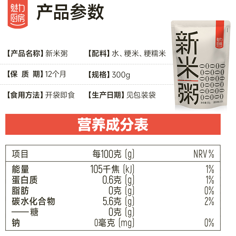 魅力厨房、尝鲜组合、300g*3袋、家常粥、速食代餐粥、开袋即食