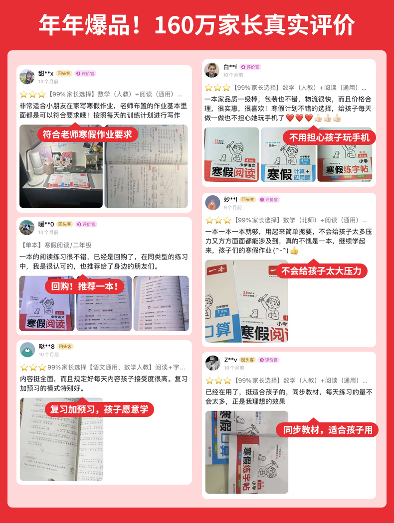 寒假阅读、口算练字帖、语文数学英语、衔接作业、一本通、预复习、多年级适用