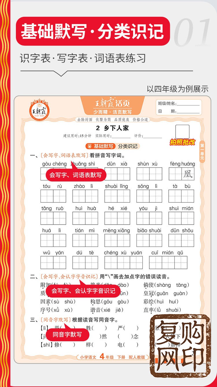 2026春下册王朝霞活页默写能手同步练习册一二年级三四五六年级一课一练凑十法计算能手数学语文专项积累英语字词句试卷默写纸