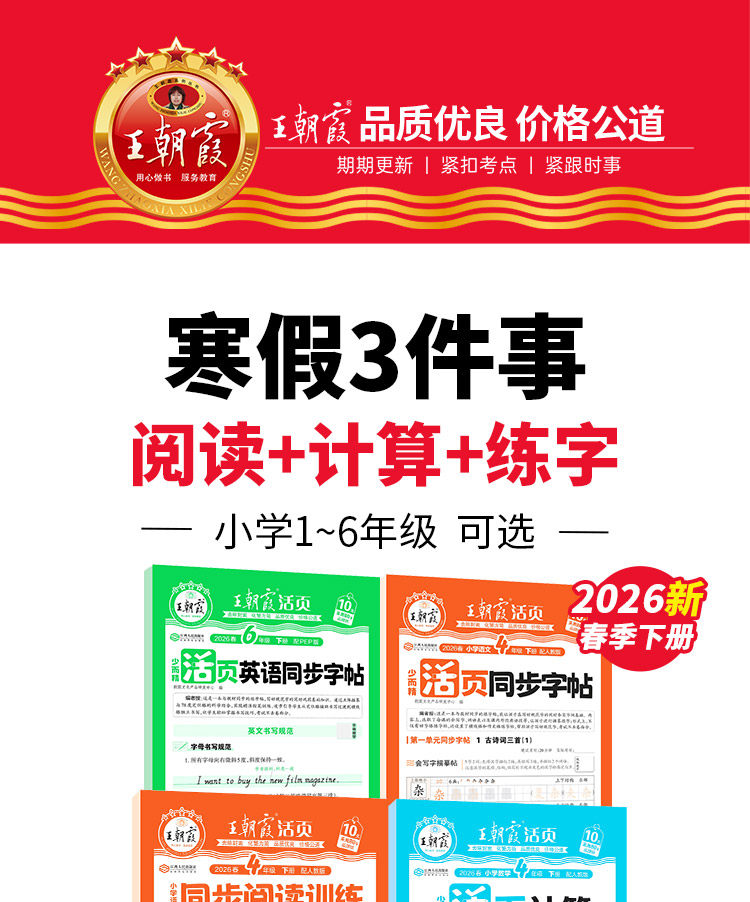 2026王朝霞、寒假三件套、活页计算、同步字帖、专项训练、衔接教材、寒假打卡