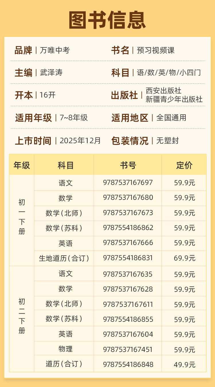 2026万唯预习视频课初一初二七八年级下册新课寒假预习笔记语文数学英语物理道历生地人教北师苏科版教辅资料万维教育官方旗舰店