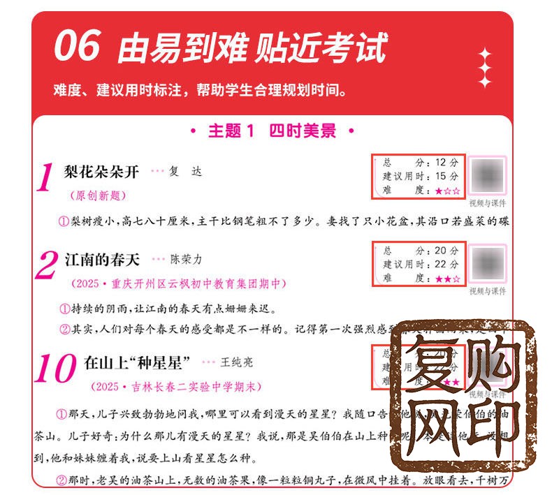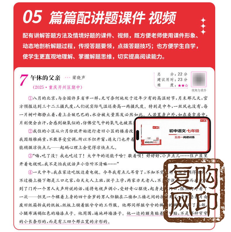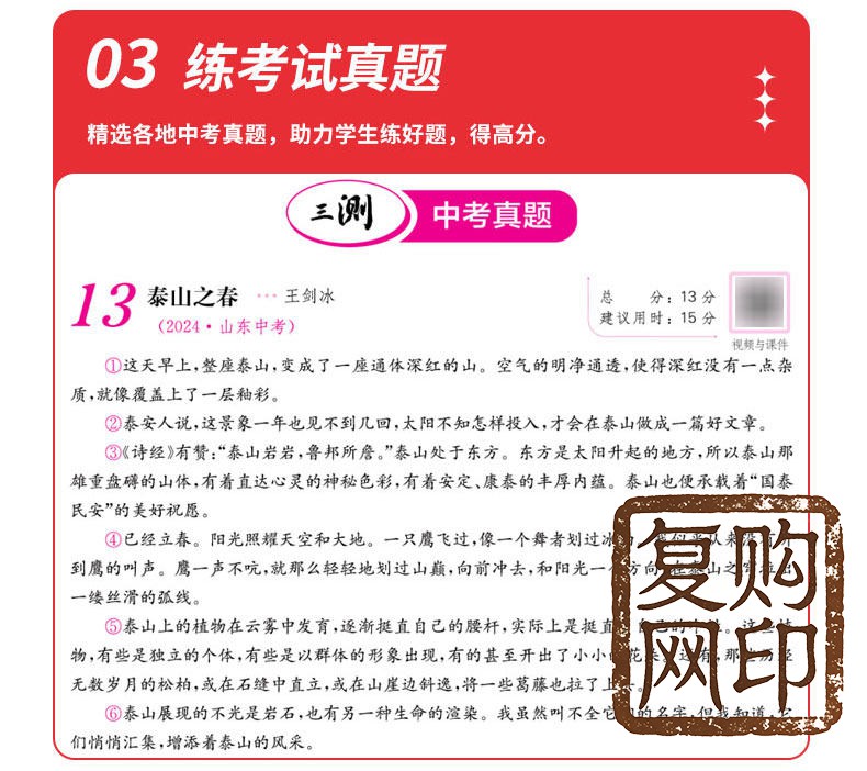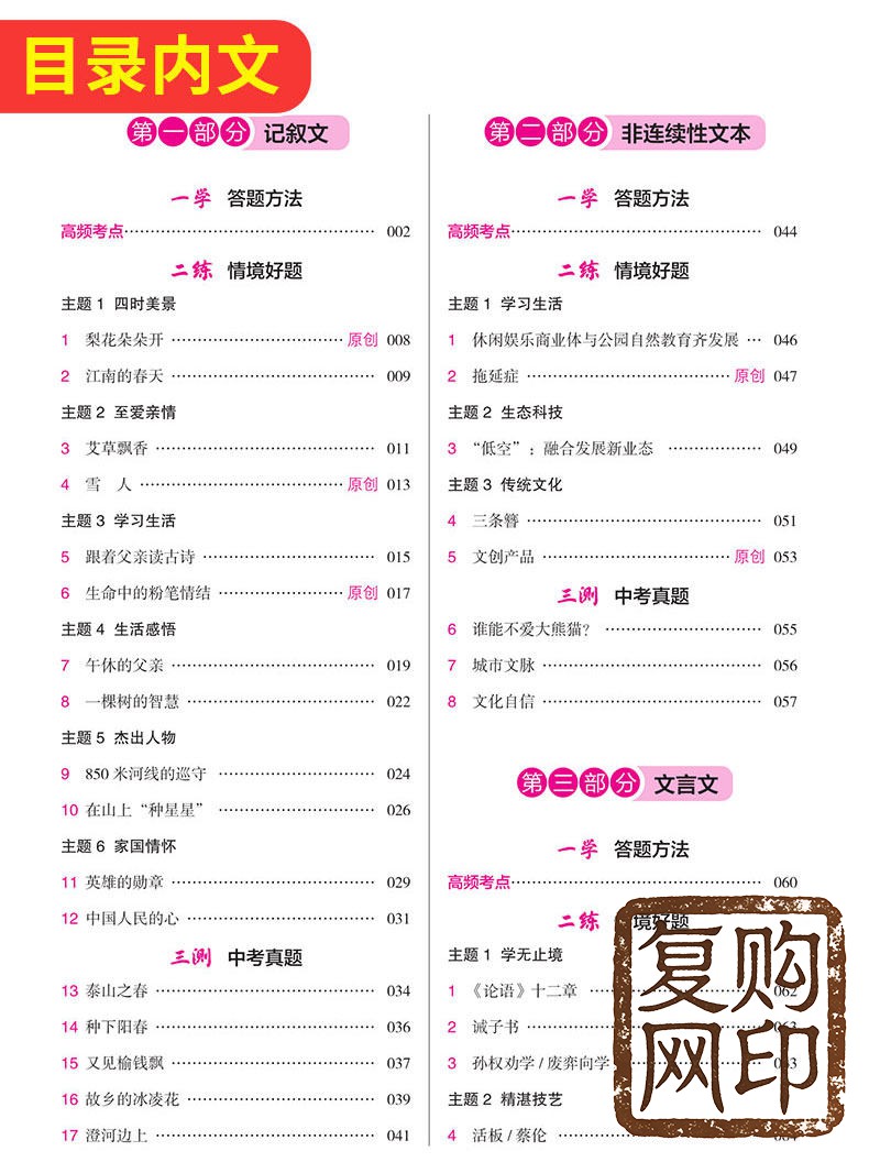 一本阅读理解 初中语文 阅读训练 五合一 真题100篇 中考专项训练