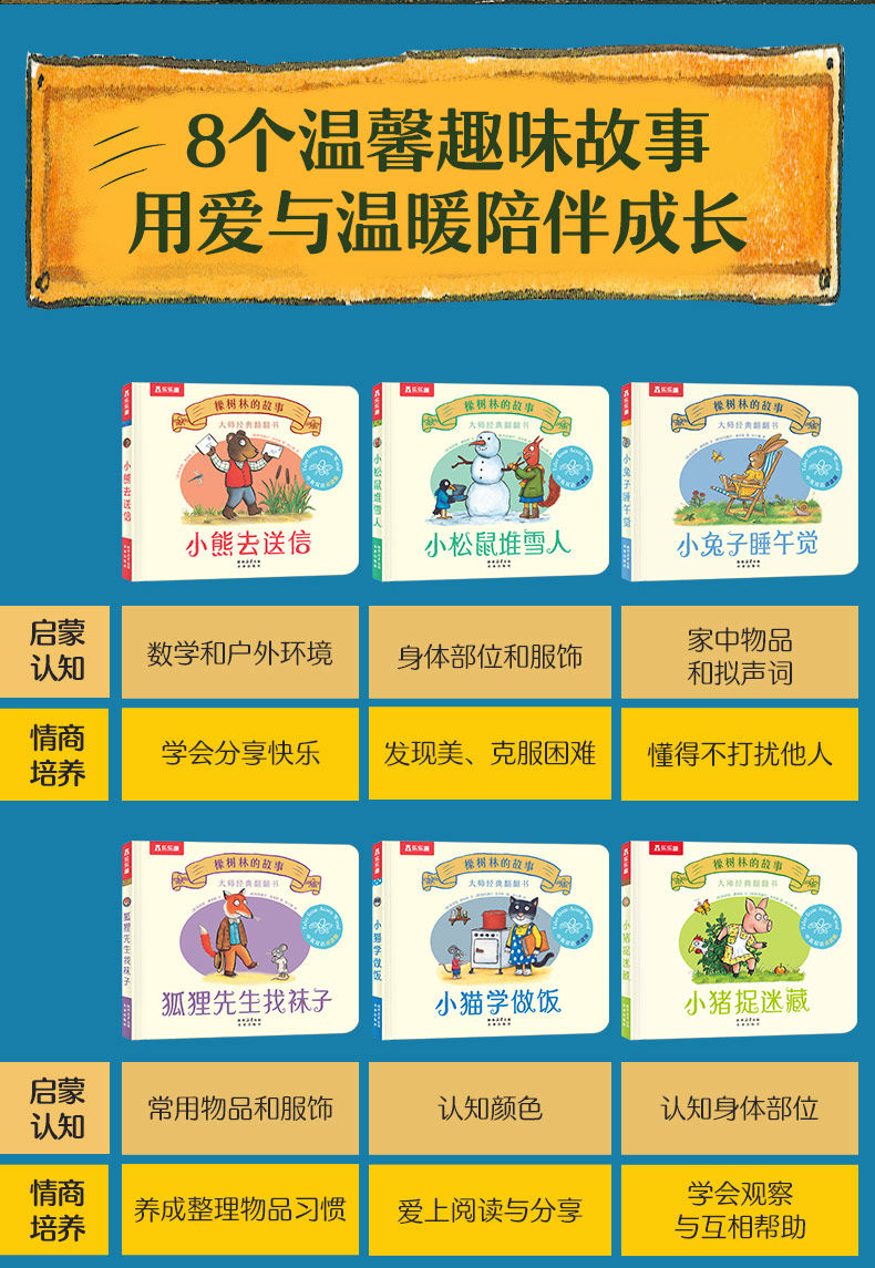 橡树林的故事8册 3册蒙氏早教绘本宝宝0-1-2-3岁乐乐趣大师经典翻翻书立体双语波立体科普捉迷藏西和皮作者语幼儿园启蒙认知Q