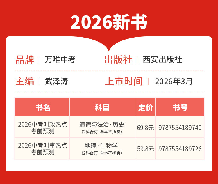 2026新版、万唯中考、时政热点、考前预测、中考备考、真题训练