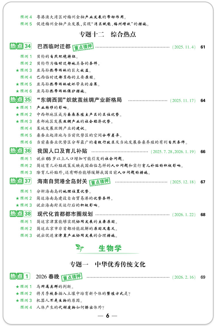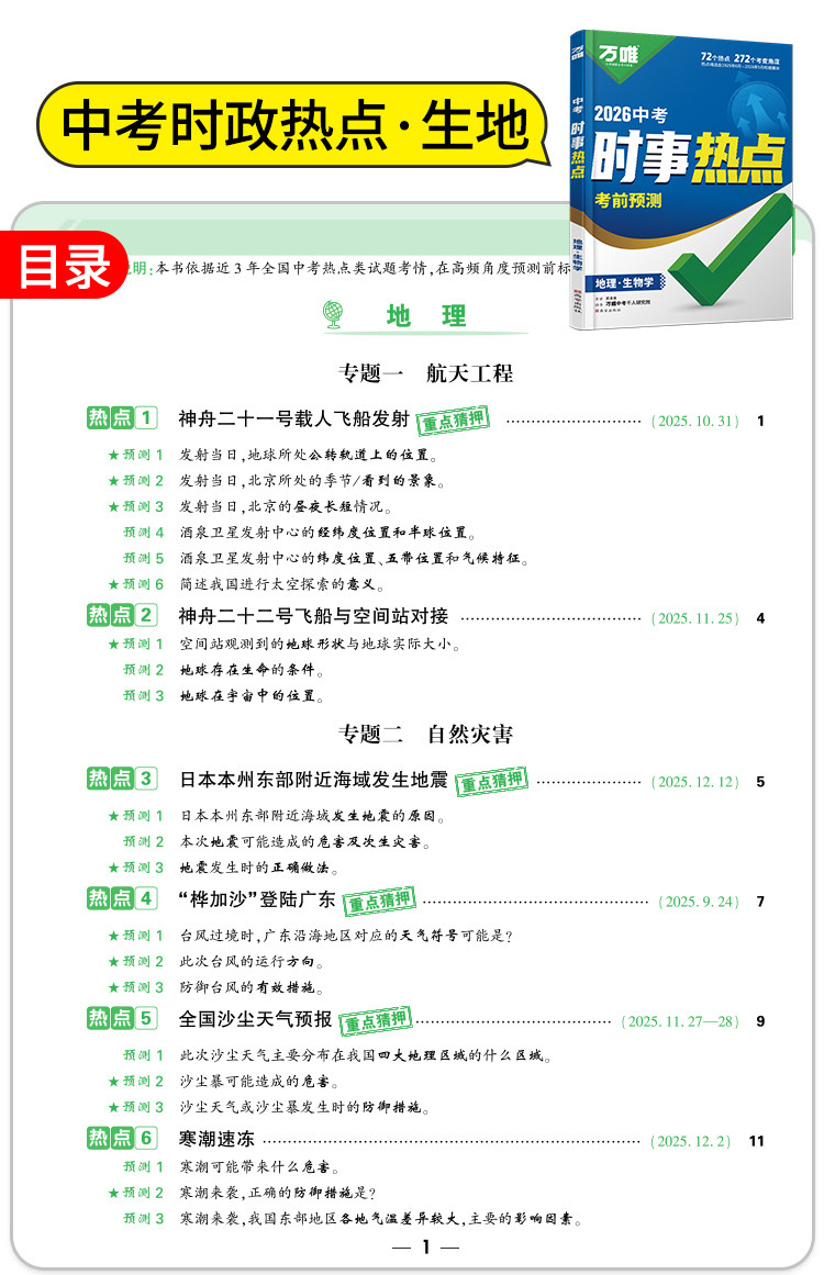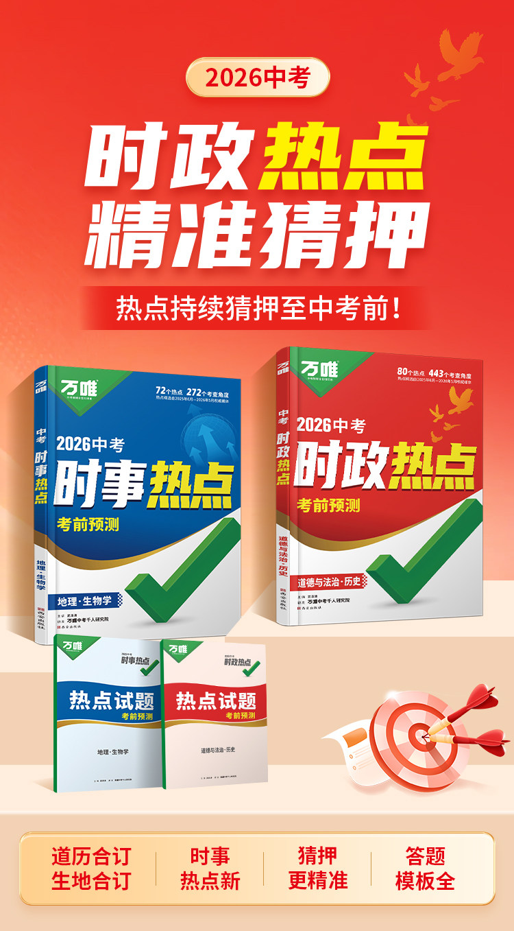 2026新版万唯中考时政热点考前预测初中789年级历史道法生物地理生地会考新闻时事热点试题猜押真题训练手册中考备考总复习练习题