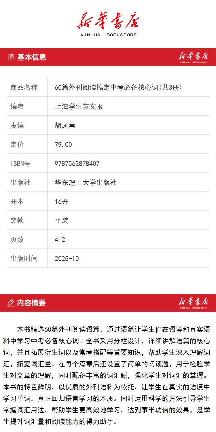 60篇外刊阅读、中考核心词、英语阅读、高分词汇、官方正版、中学生适用