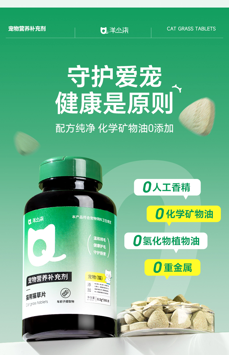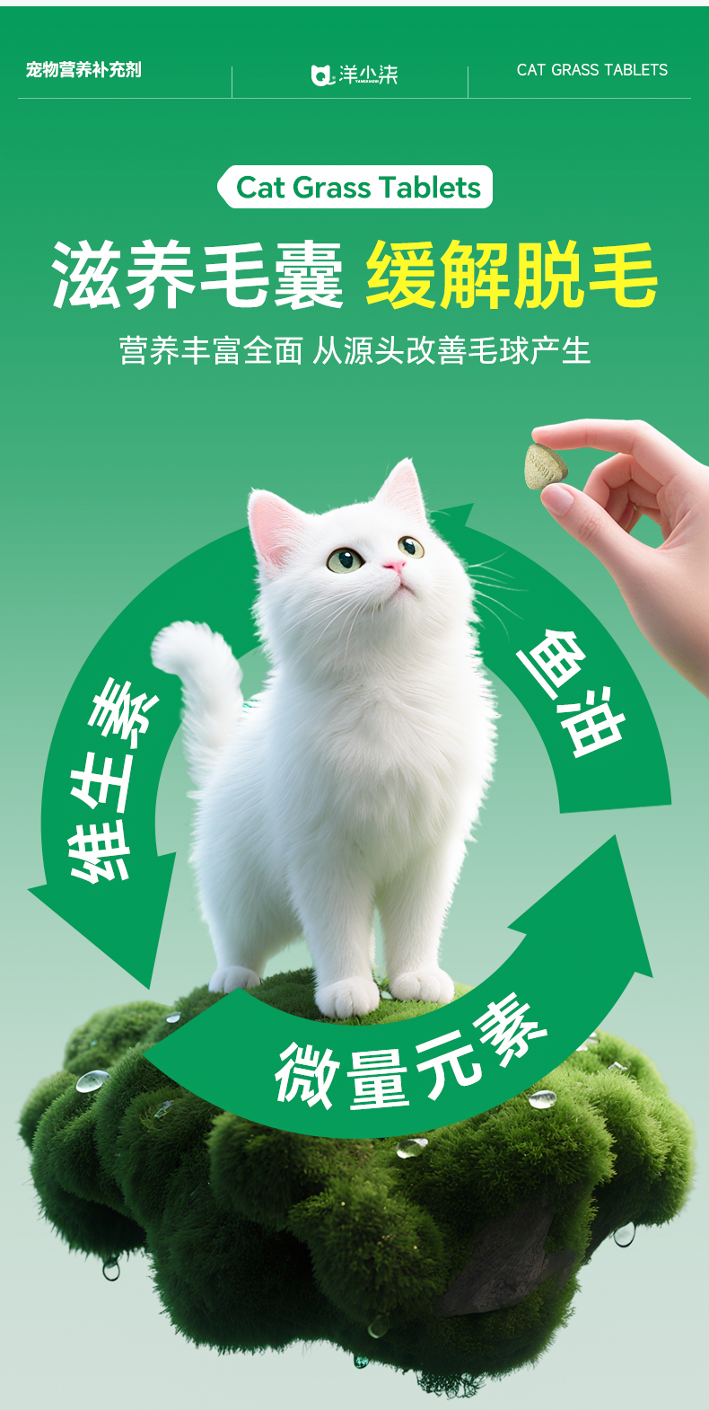 洋小柒猫用猫草片猫咪化毛球宠物营养补充剂调理肠胃化毛膏