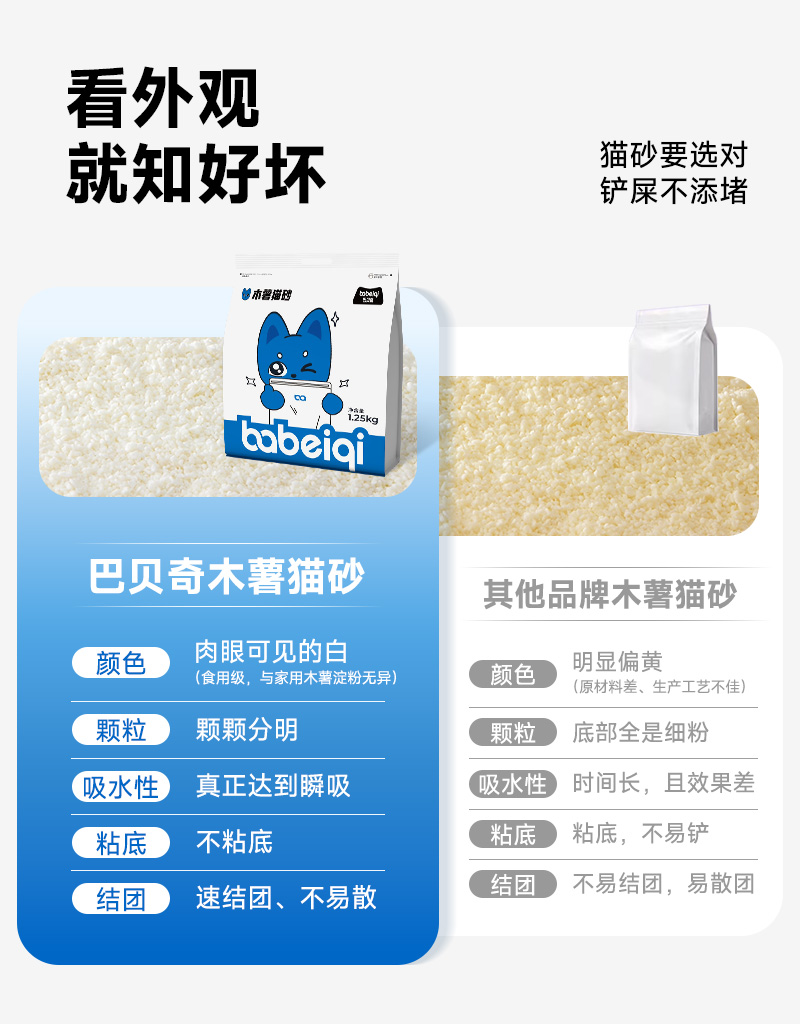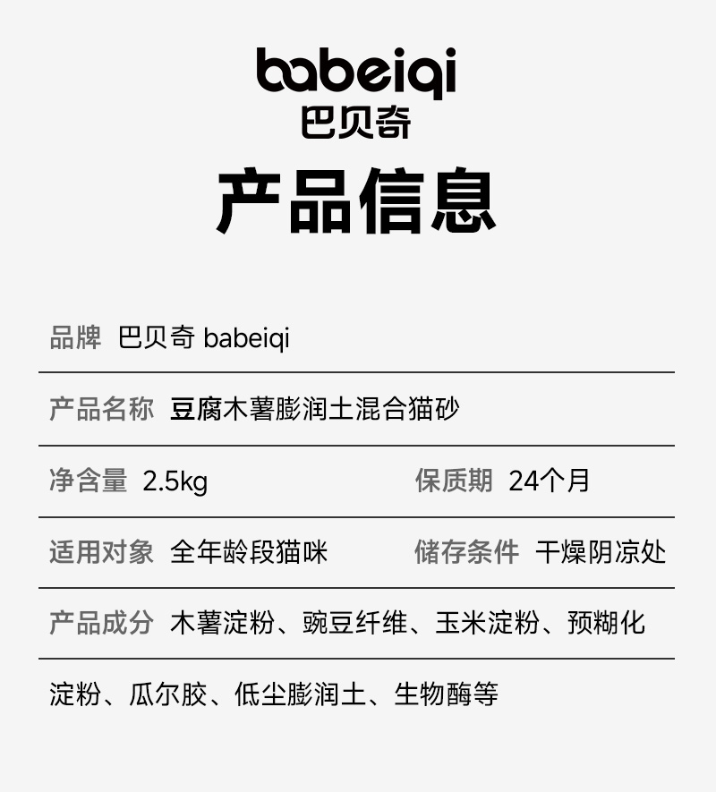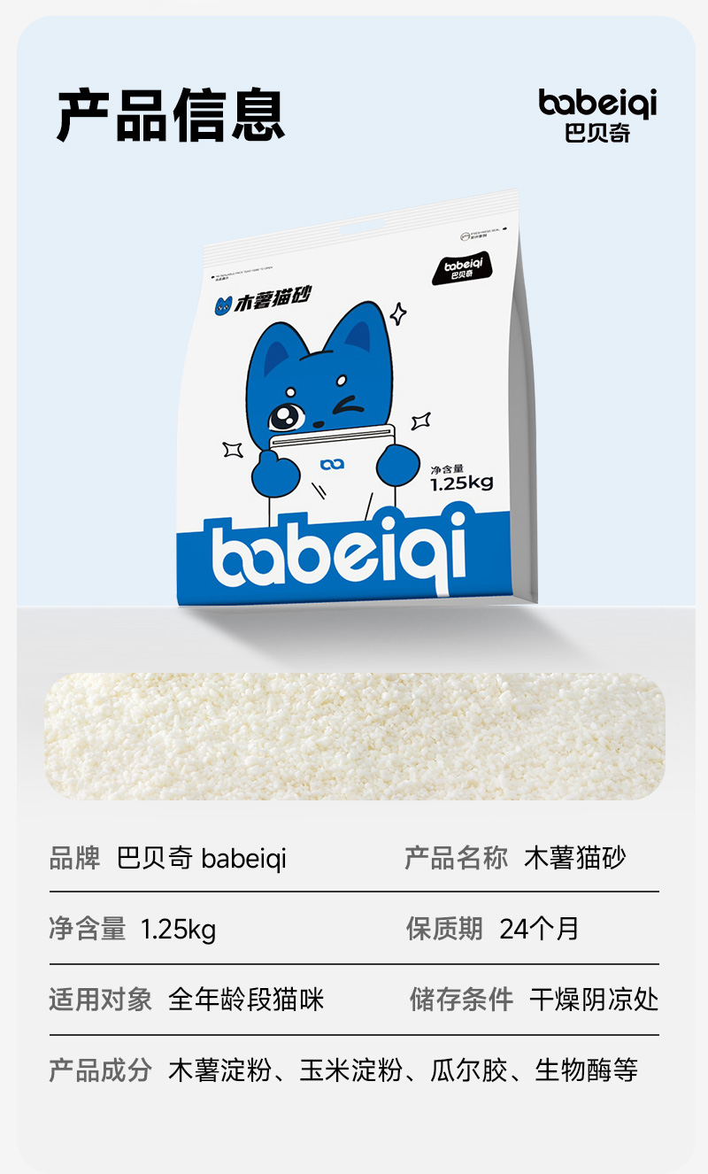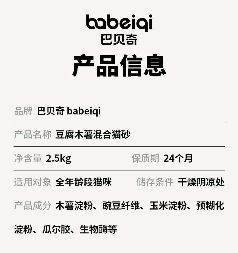 巴贝奇、豆腐混合猫砂、木薯砂、除臭、不粘底、低尘、易结团、无味植物小颗粒沙