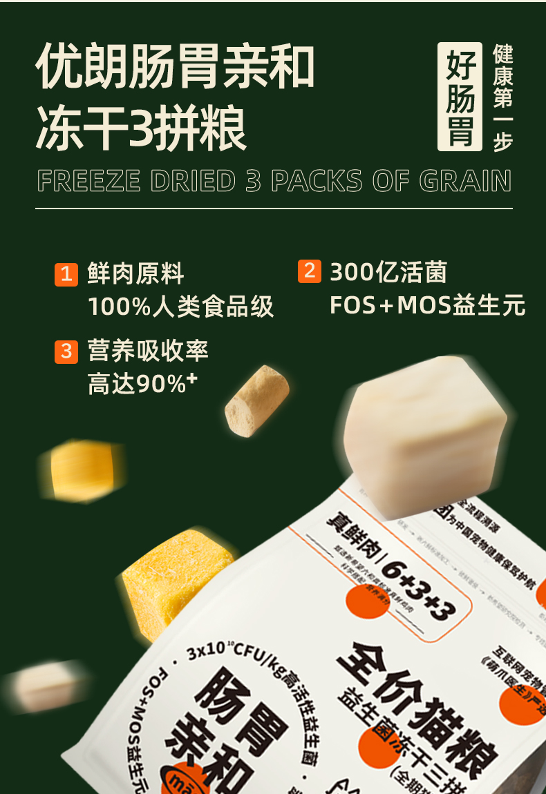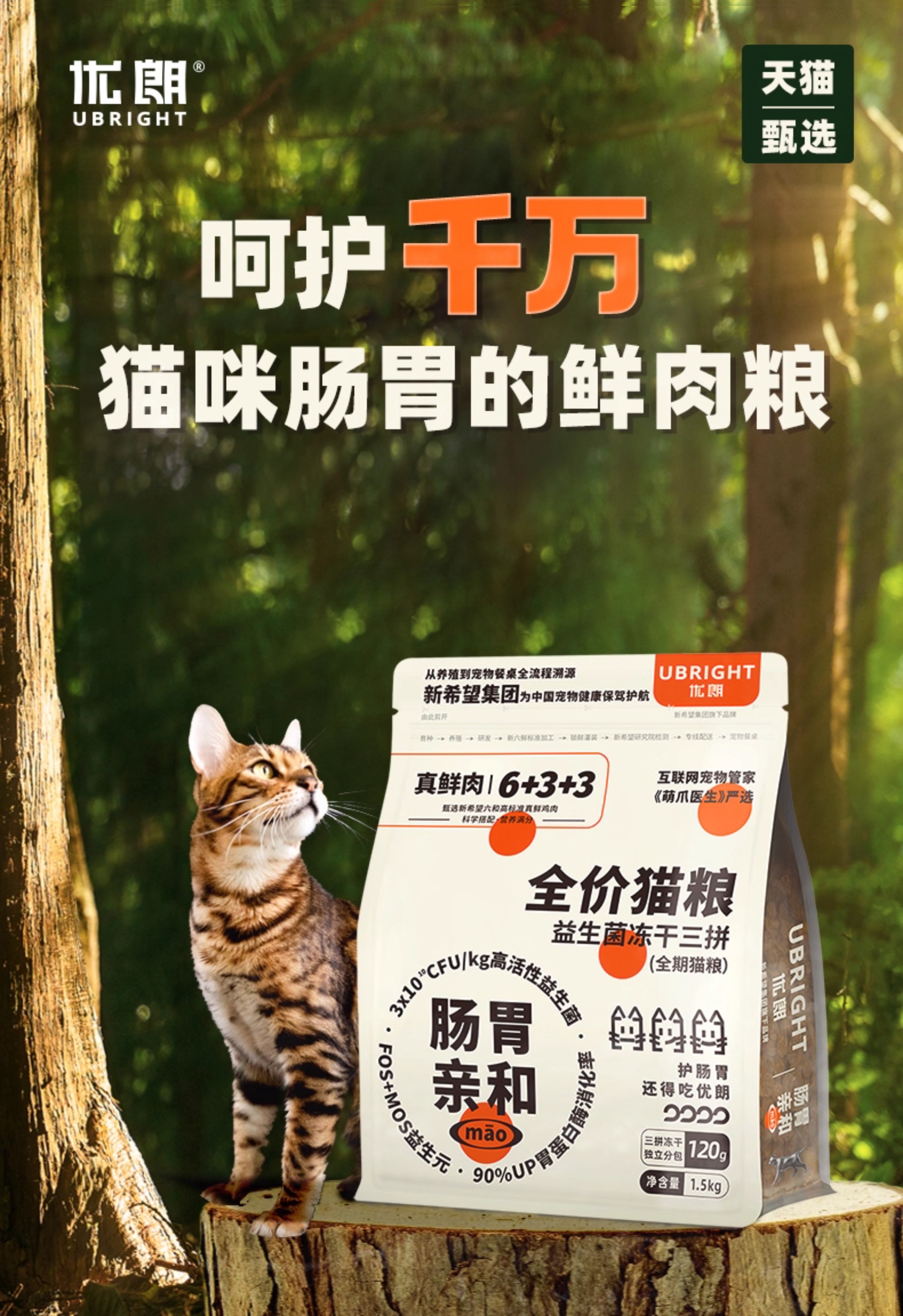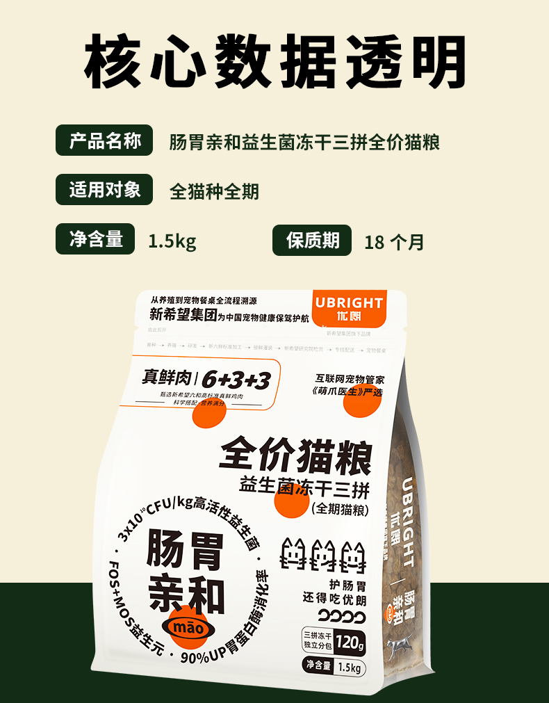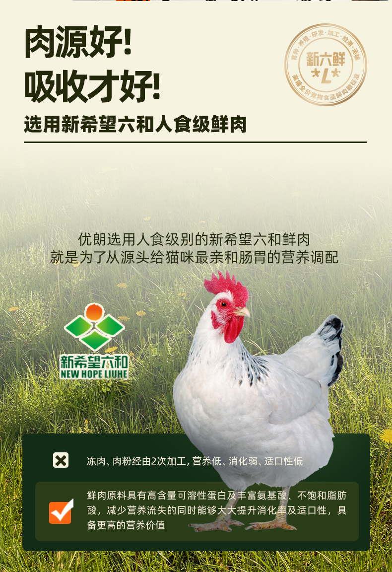 优朗新希望、猫粮、三拼、鸡肉冻干、鲜肉、高蛋白、肠胃亲和