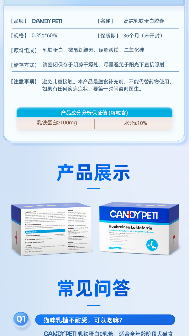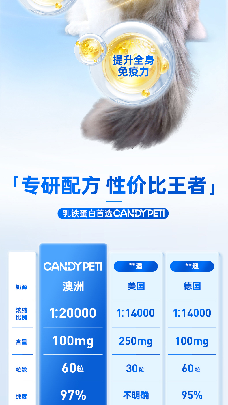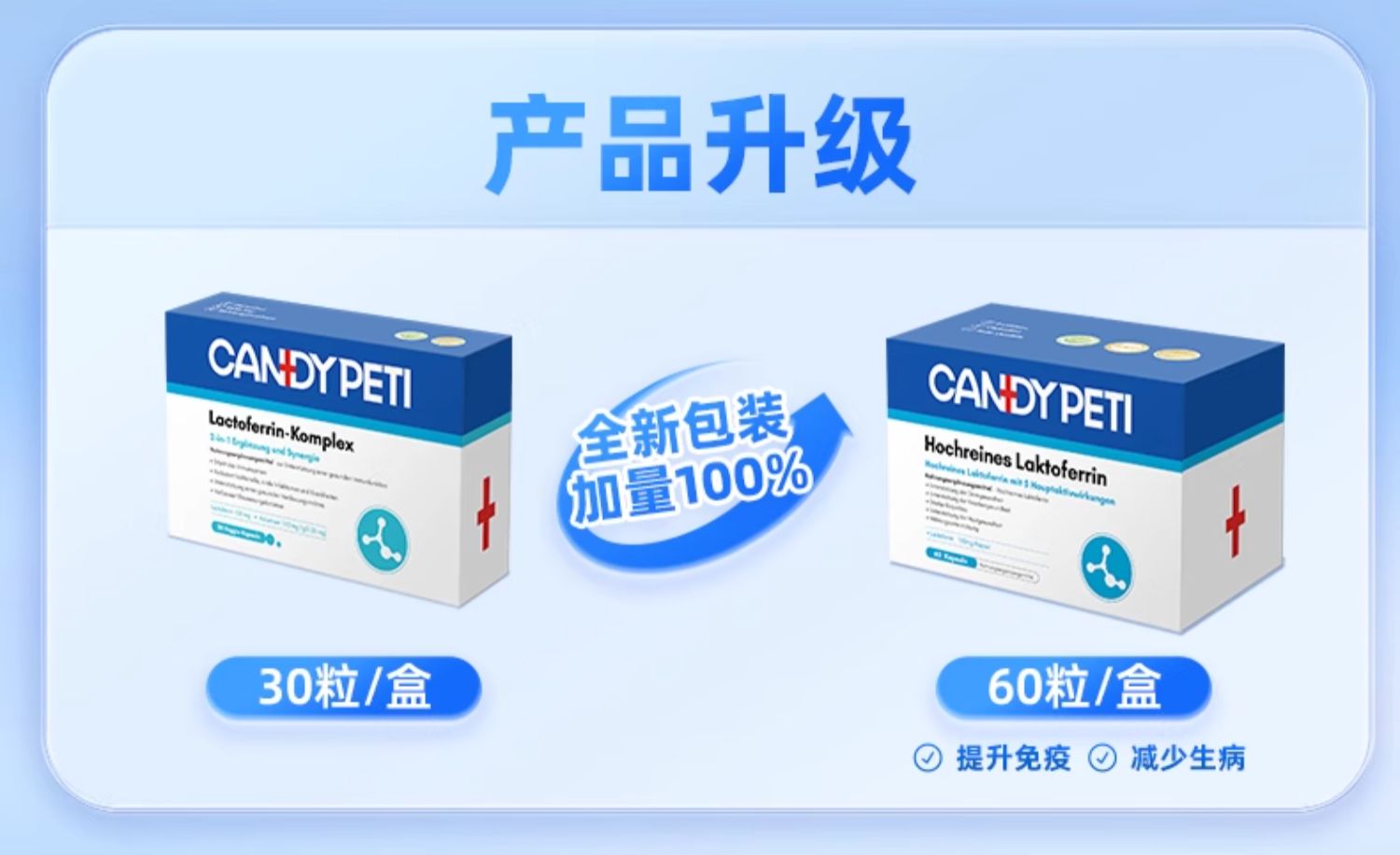 德国Candypeti乳铁蛋白猫用胶囊60粒增强猫咪免疫力抵抗猫鼻支