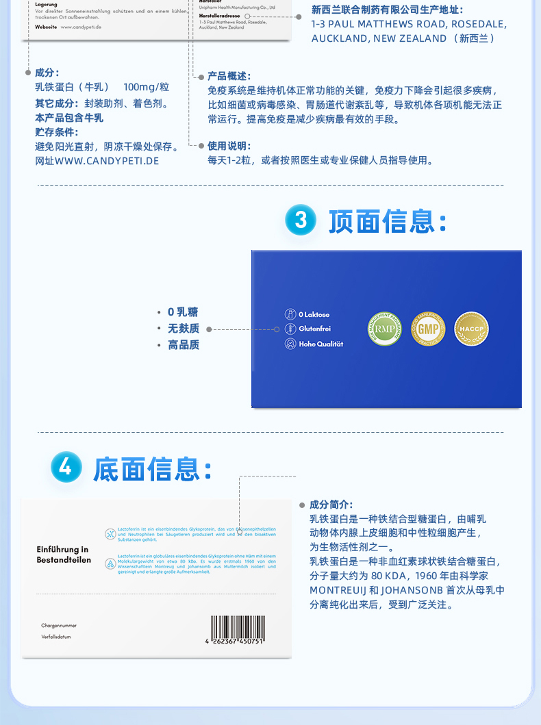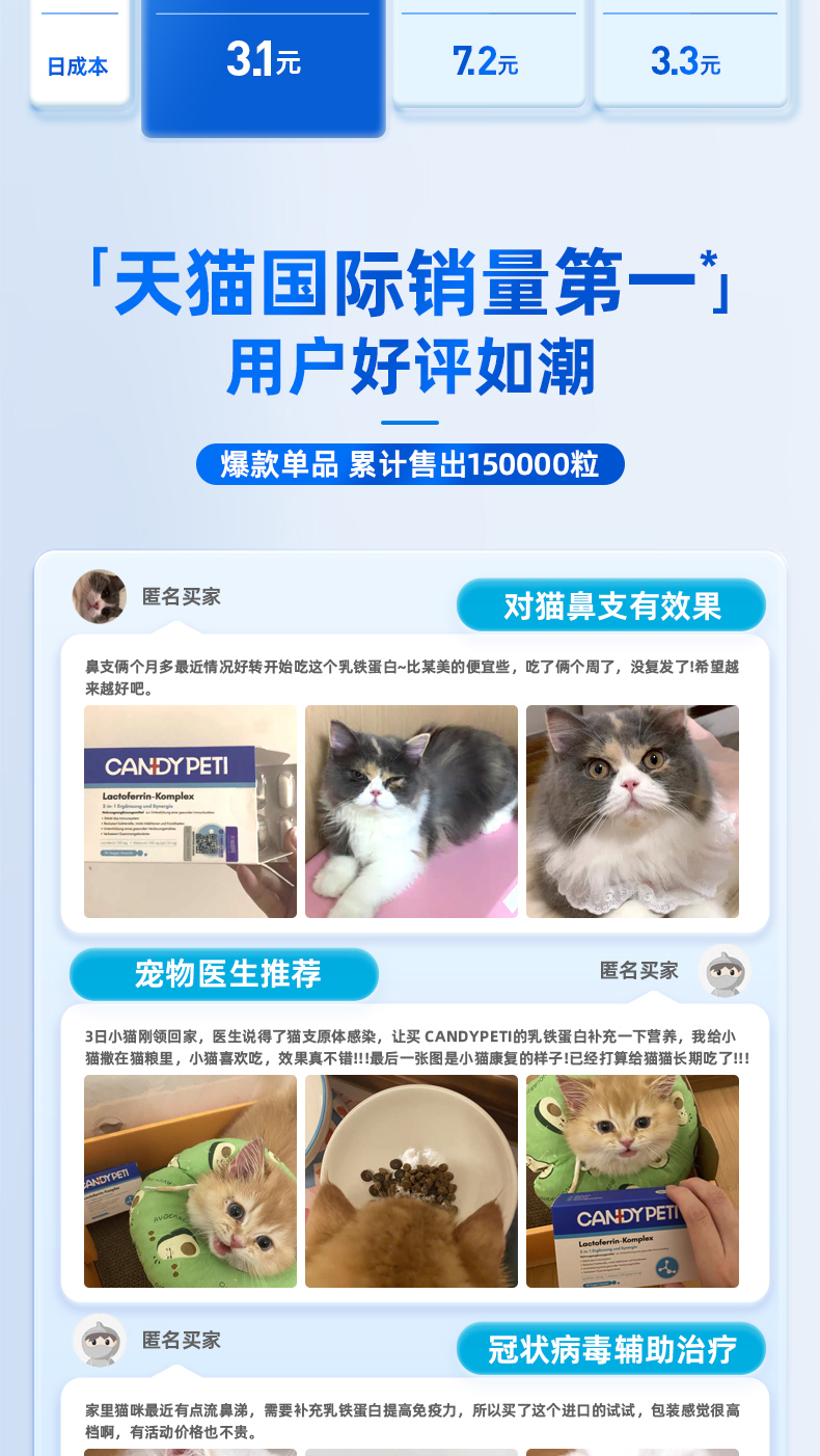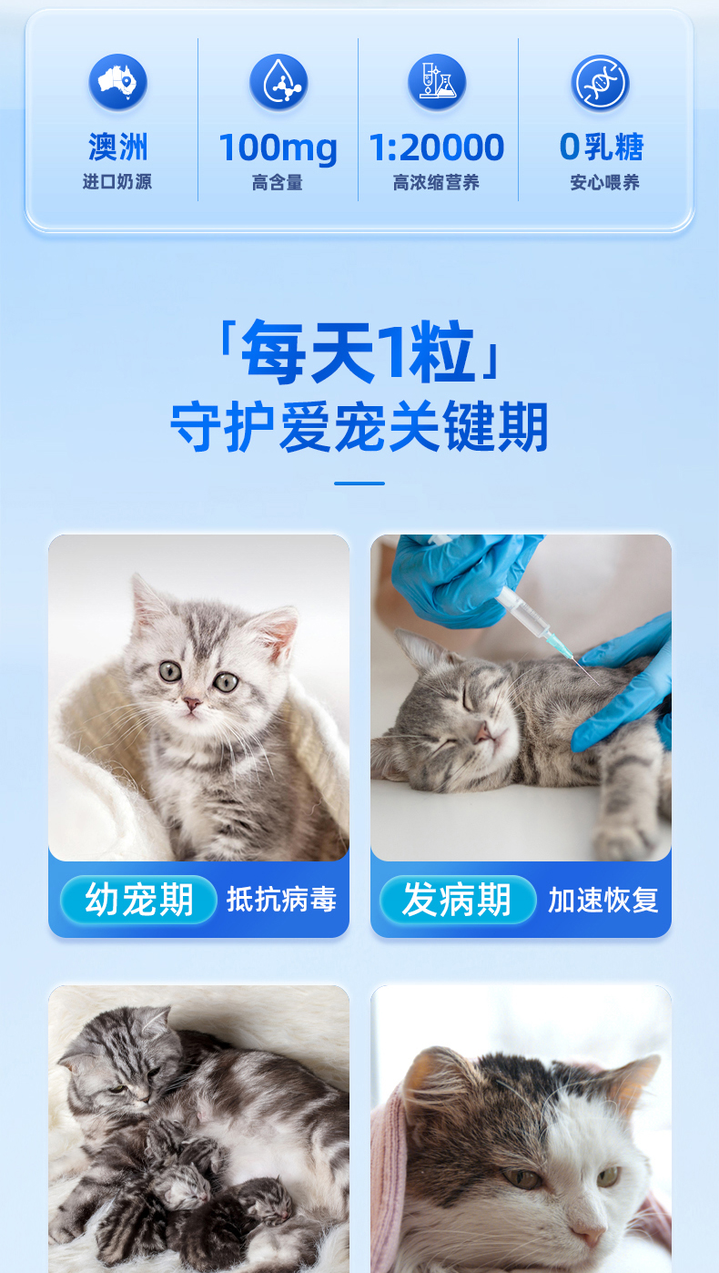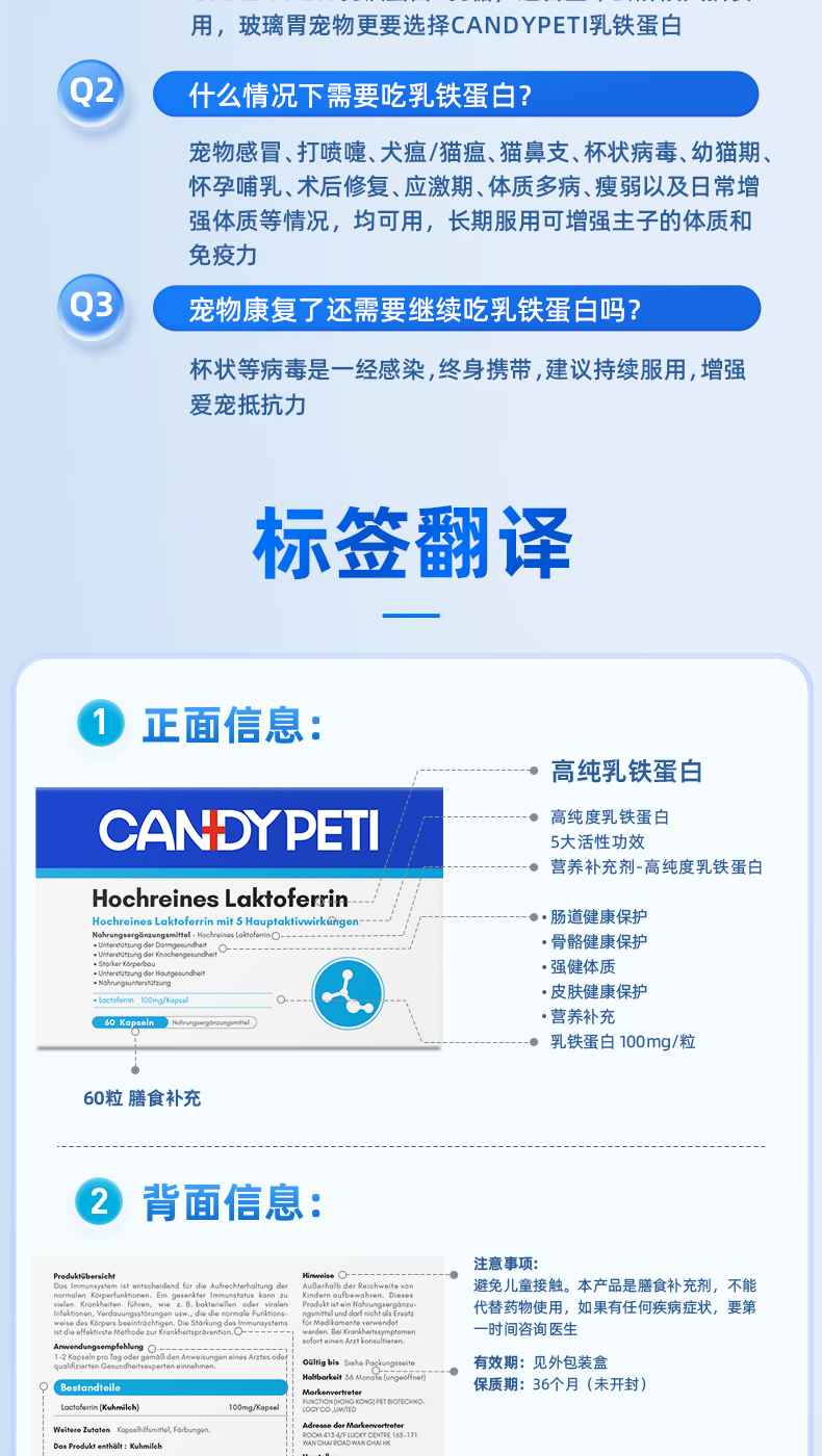 德国Candypeti乳铁蛋白猫用胶囊60粒增强猫咪免疫力抵抗猫鼻支