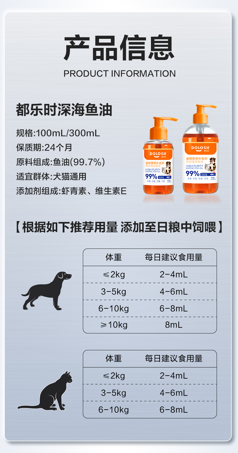 都乐时宠物磷虾油鱼油猫用犬用虾青素鱼油美毛高纯度omega3-300ml