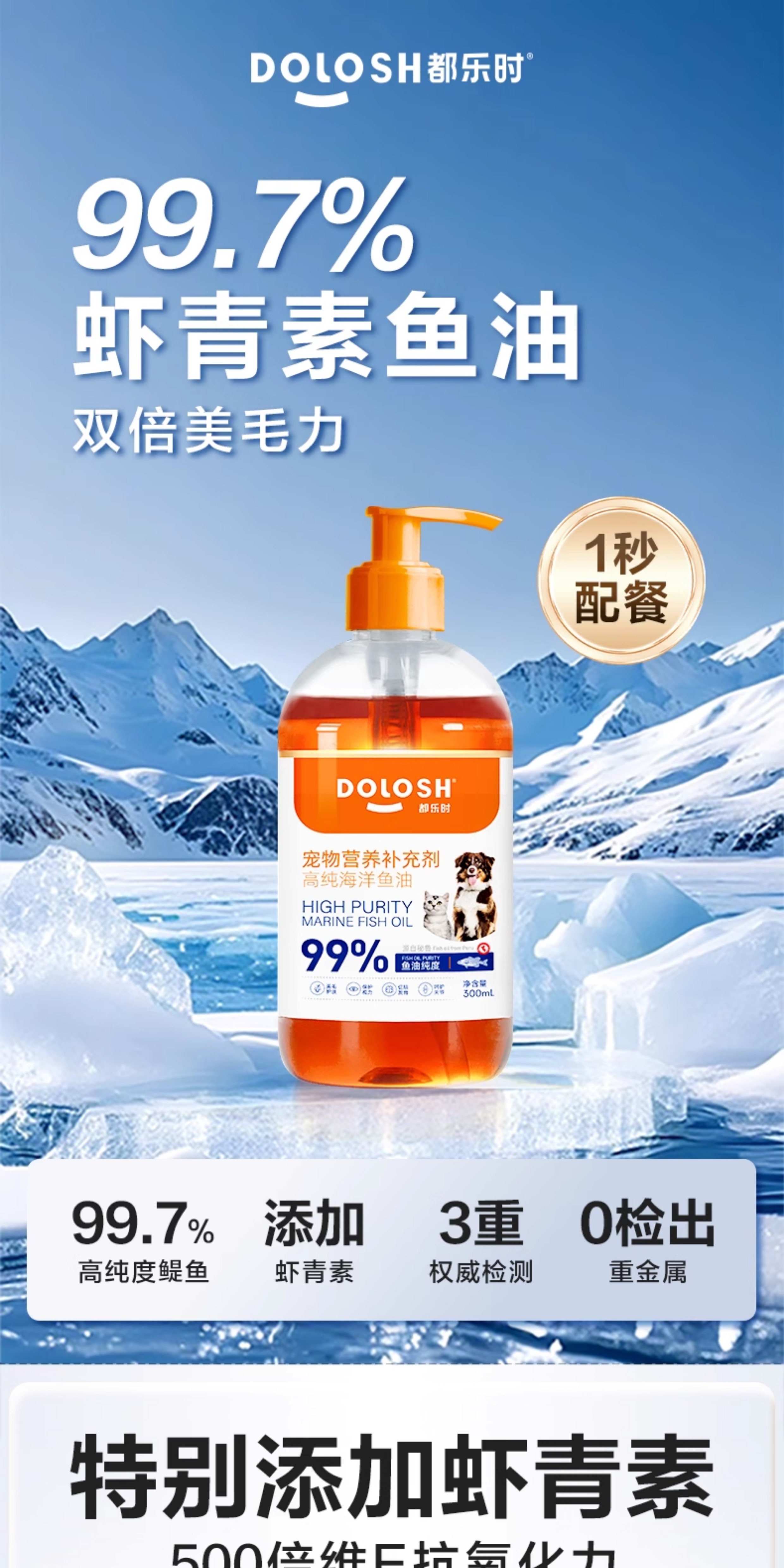 都乐时、宠物磷虾油、鱼油、猫用犬用、虾青素、美毛、omega3