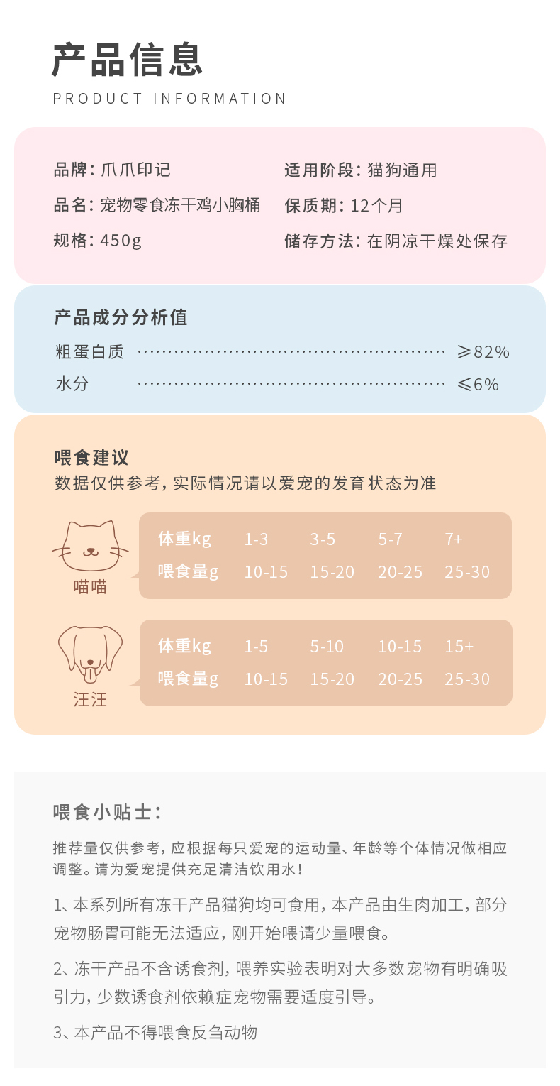 爪爪印记、鸡胸肉冻干、猫零食、生骨肉鸡肉粒、磨牙棒、宠物主食拌粮、桶装