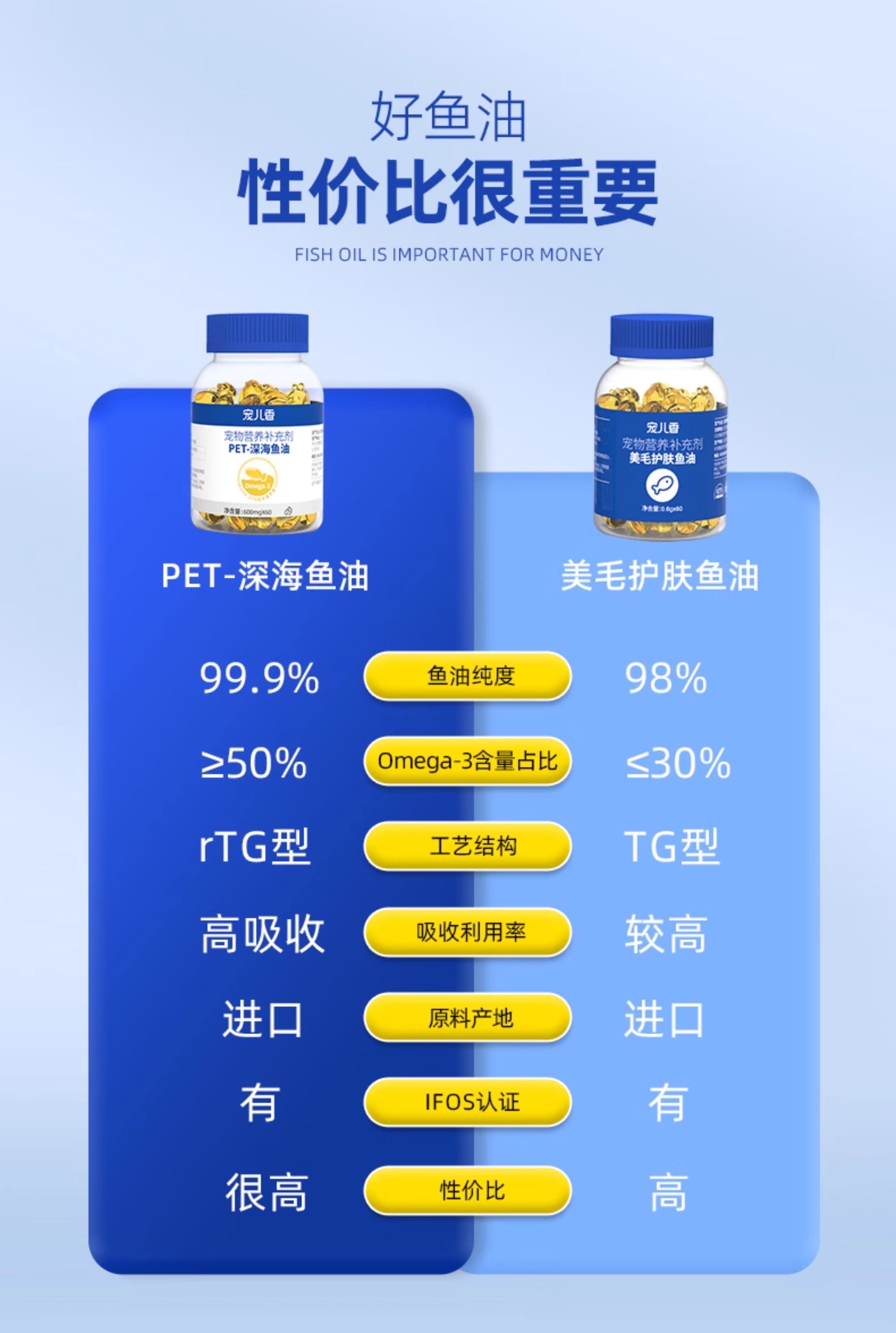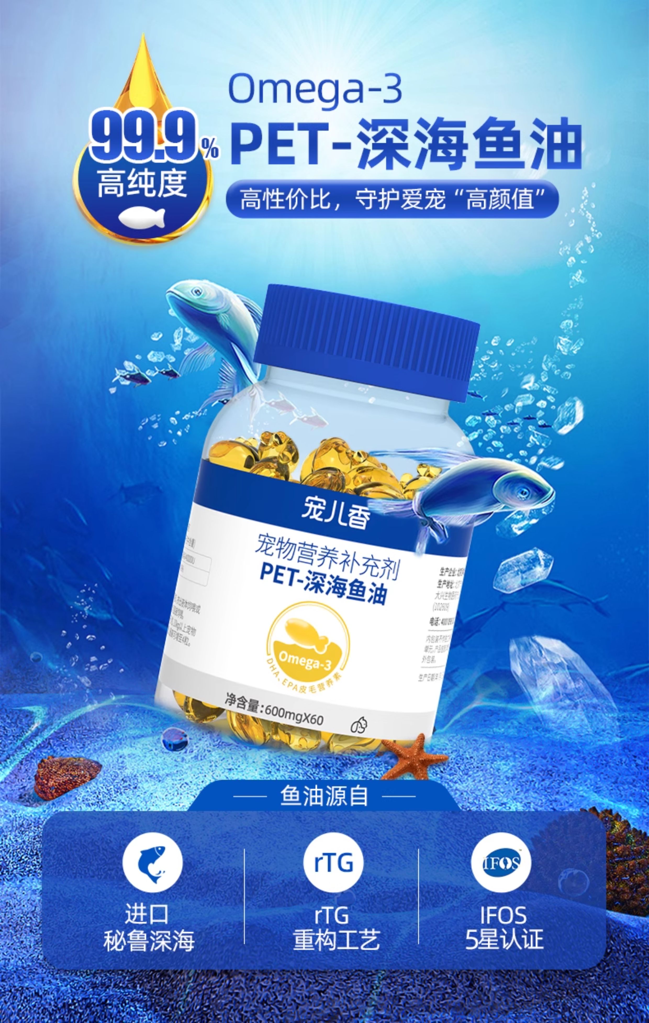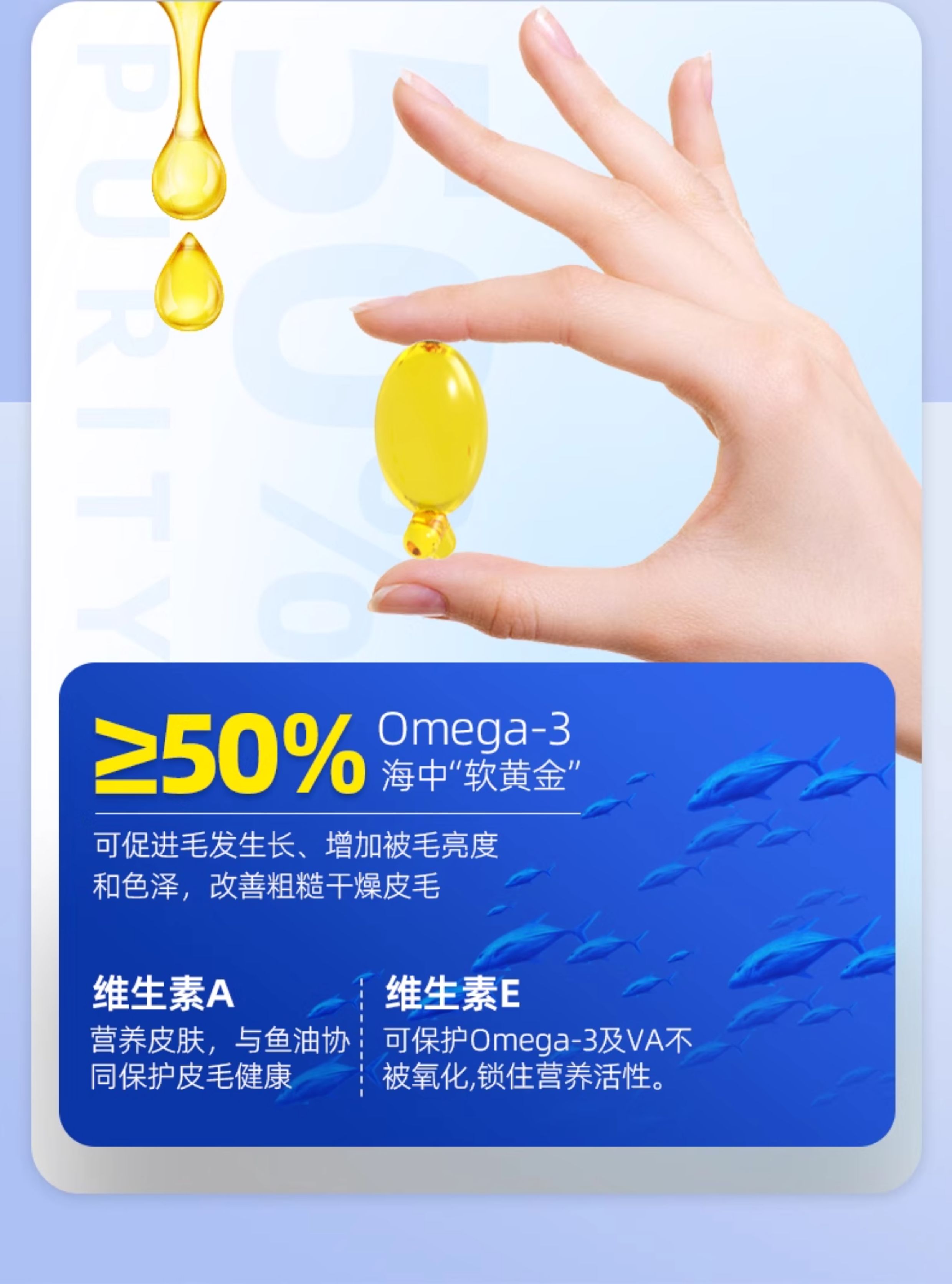 宠儿香美毛、深海鱼油、猫咪专用、狗狗专用、法斗适用、比熊适用、宠物掉毛爆毛