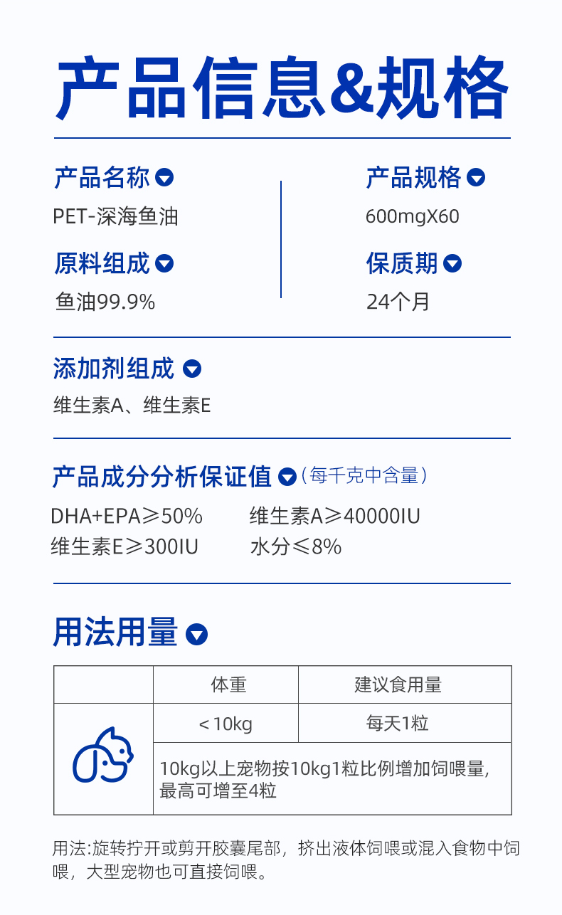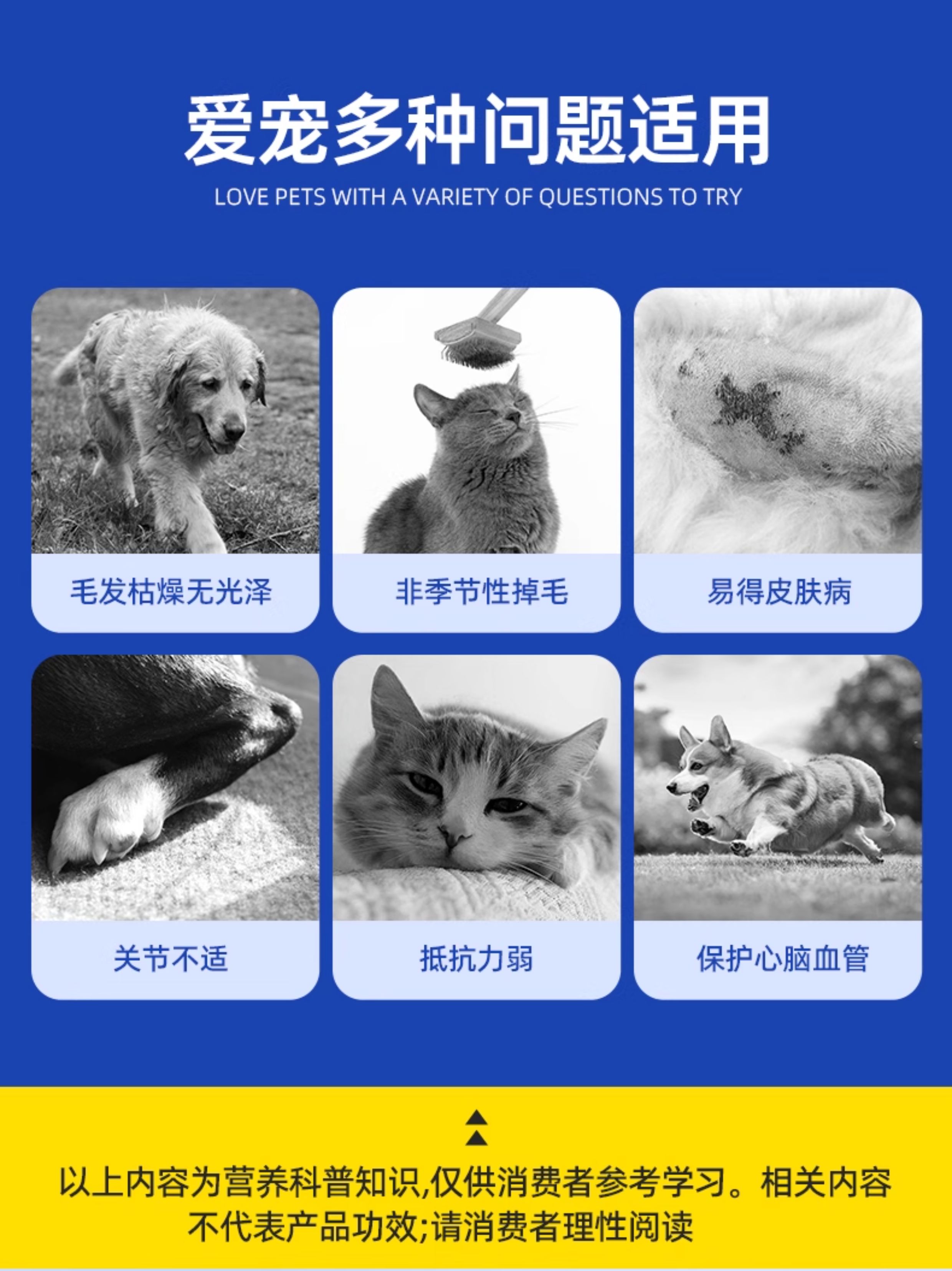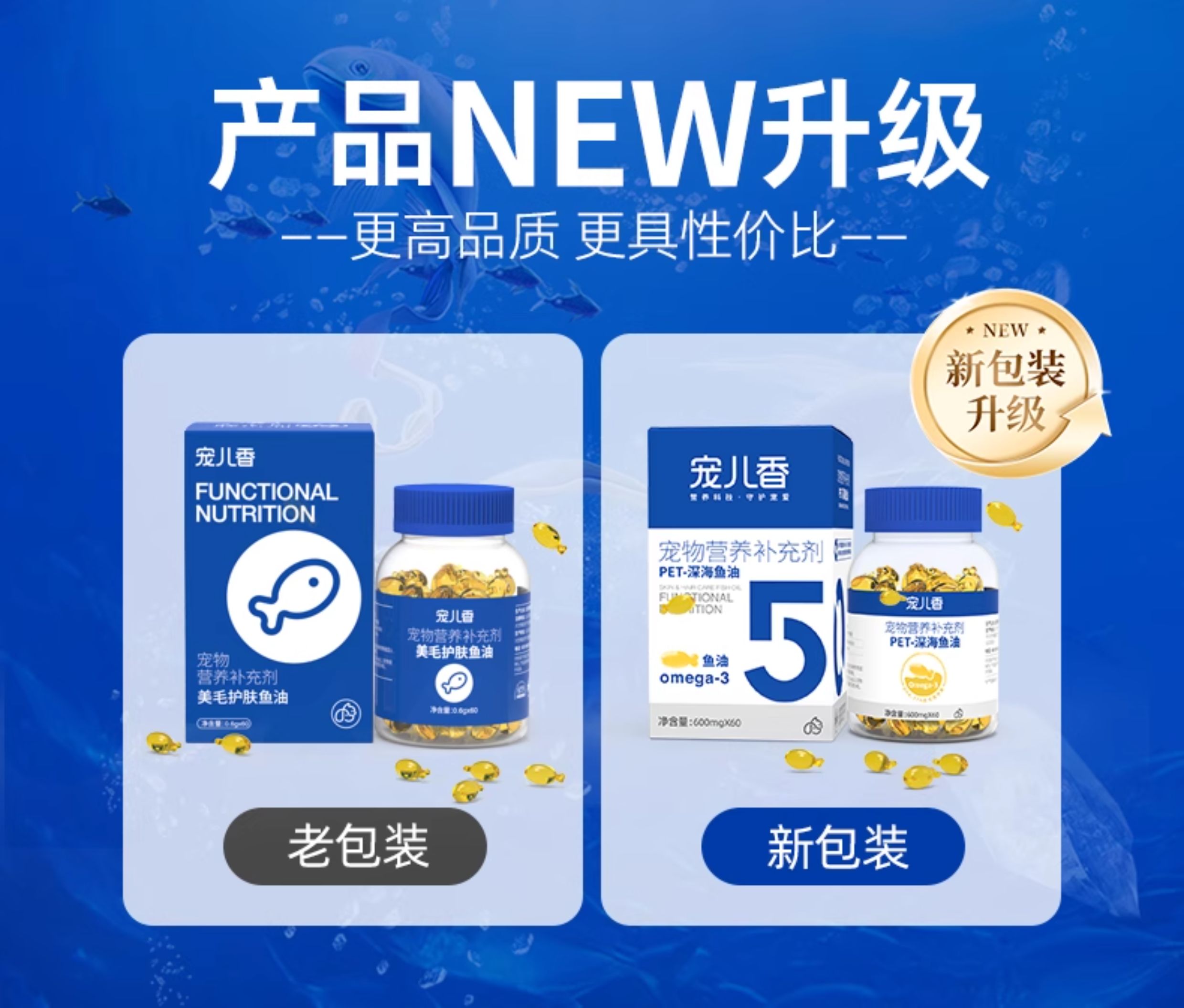 宠儿香美毛、深海鱼油、猫咪专用、狗狗专用、法斗适用、比熊适用、宠物掉毛爆毛