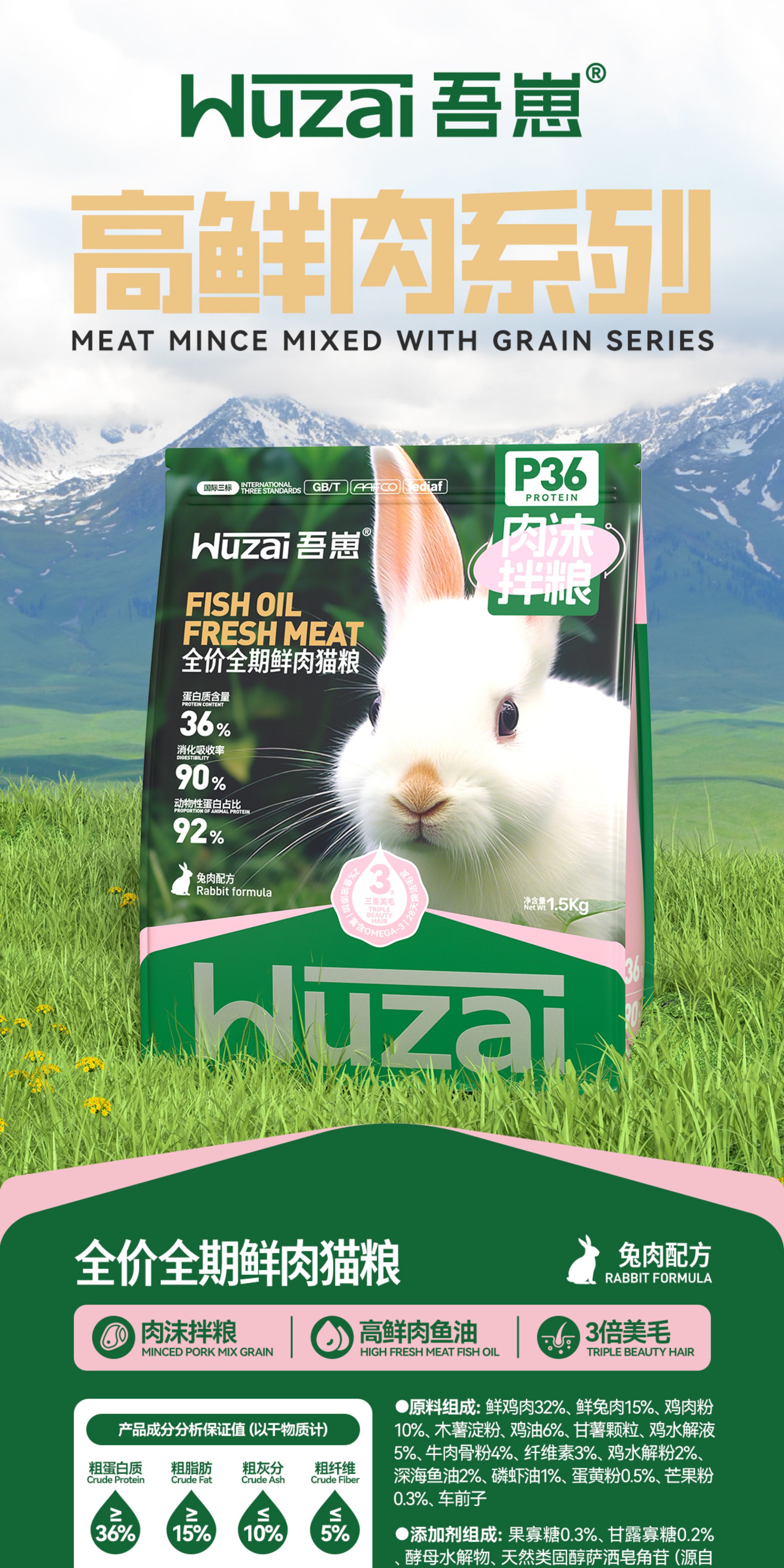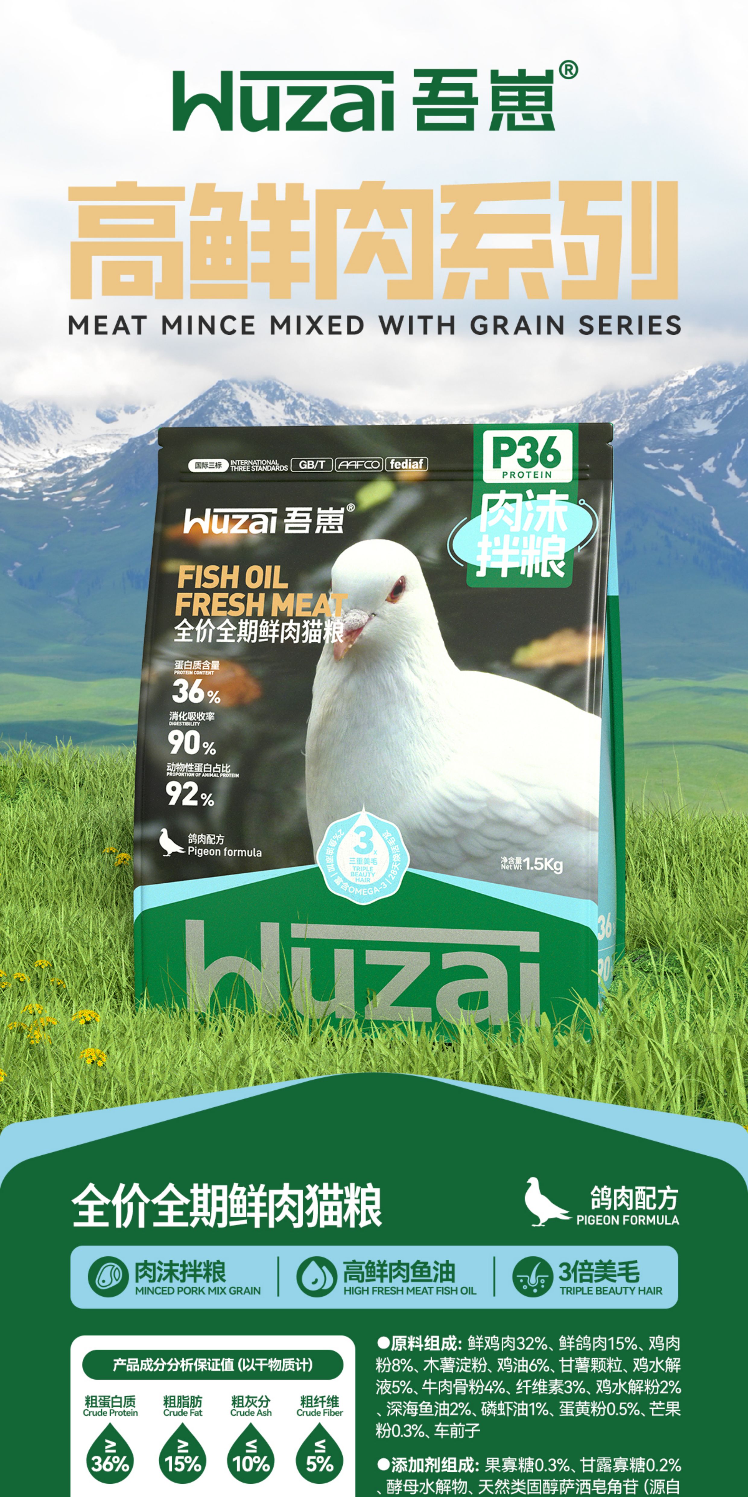吾崽、全价全期、鲜肉猫粮、P36、肉沫拌粮、成猫幼猫通用、猫主粮