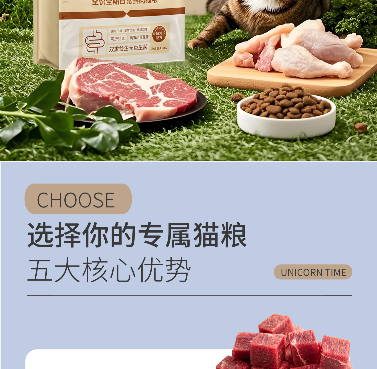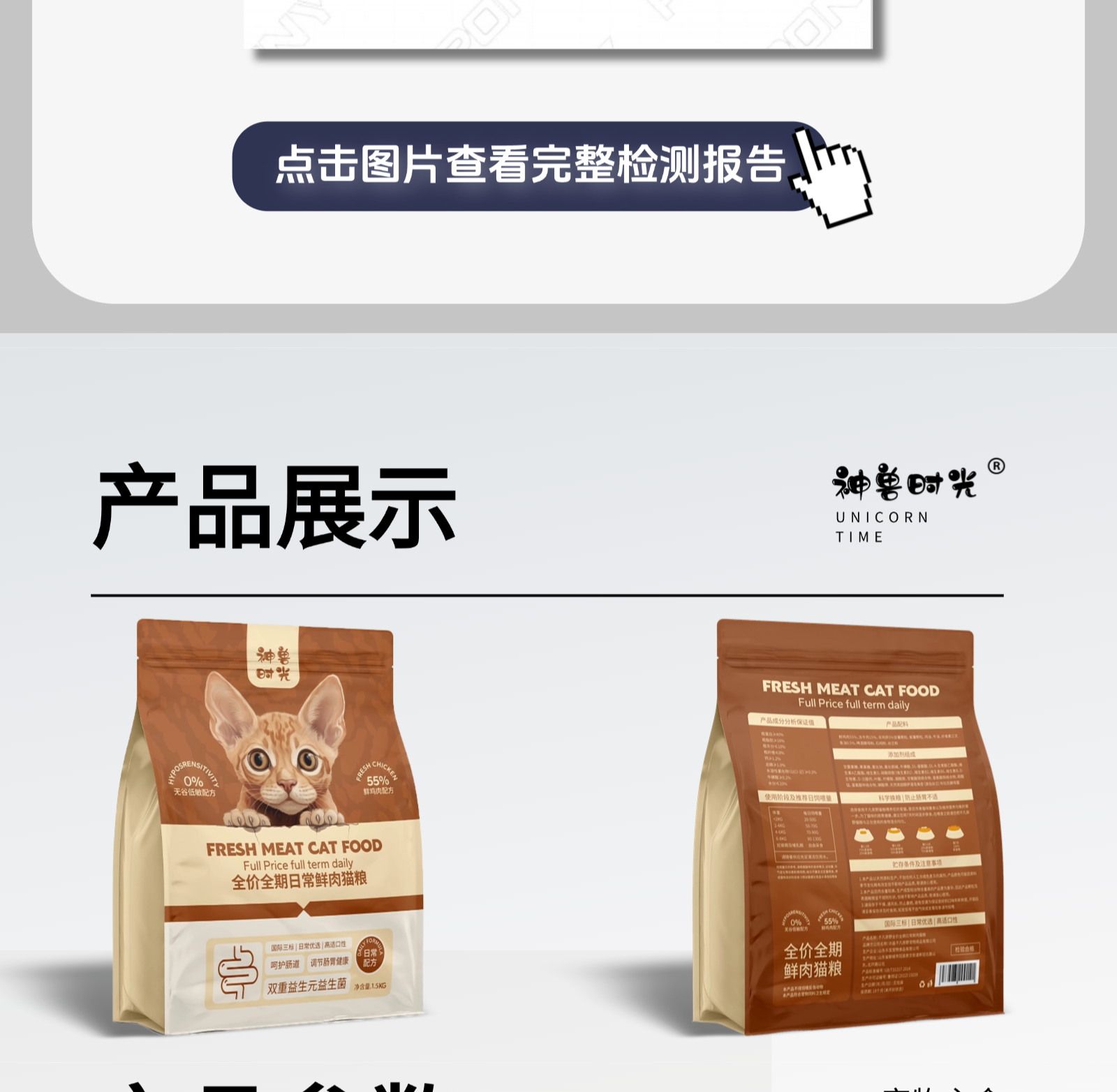 神兽时光、全价鲜肉猫粮、试吃、成幼猫通用、益生菌、成长健康、营养平价