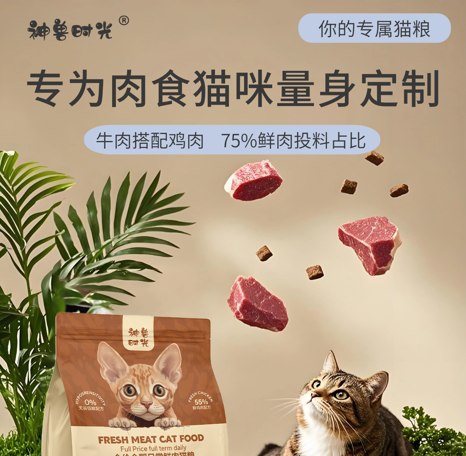 神兽时光全价鲜肉猫粮试吃成幼猫通用益生菌助力成长健康营养平价