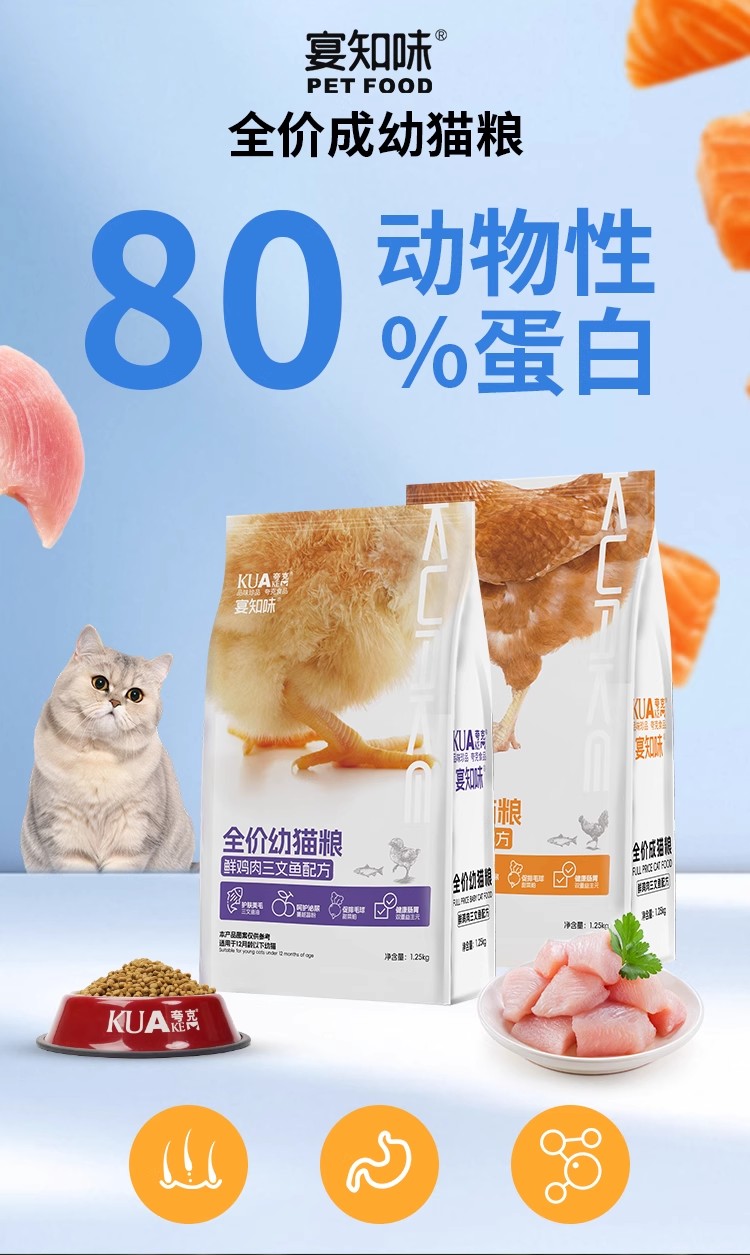 夸克猫粮、成猫、蓝猫布偶田园猫、增肥、营养护毛发、全价鲜肉粮、旗舰店正品