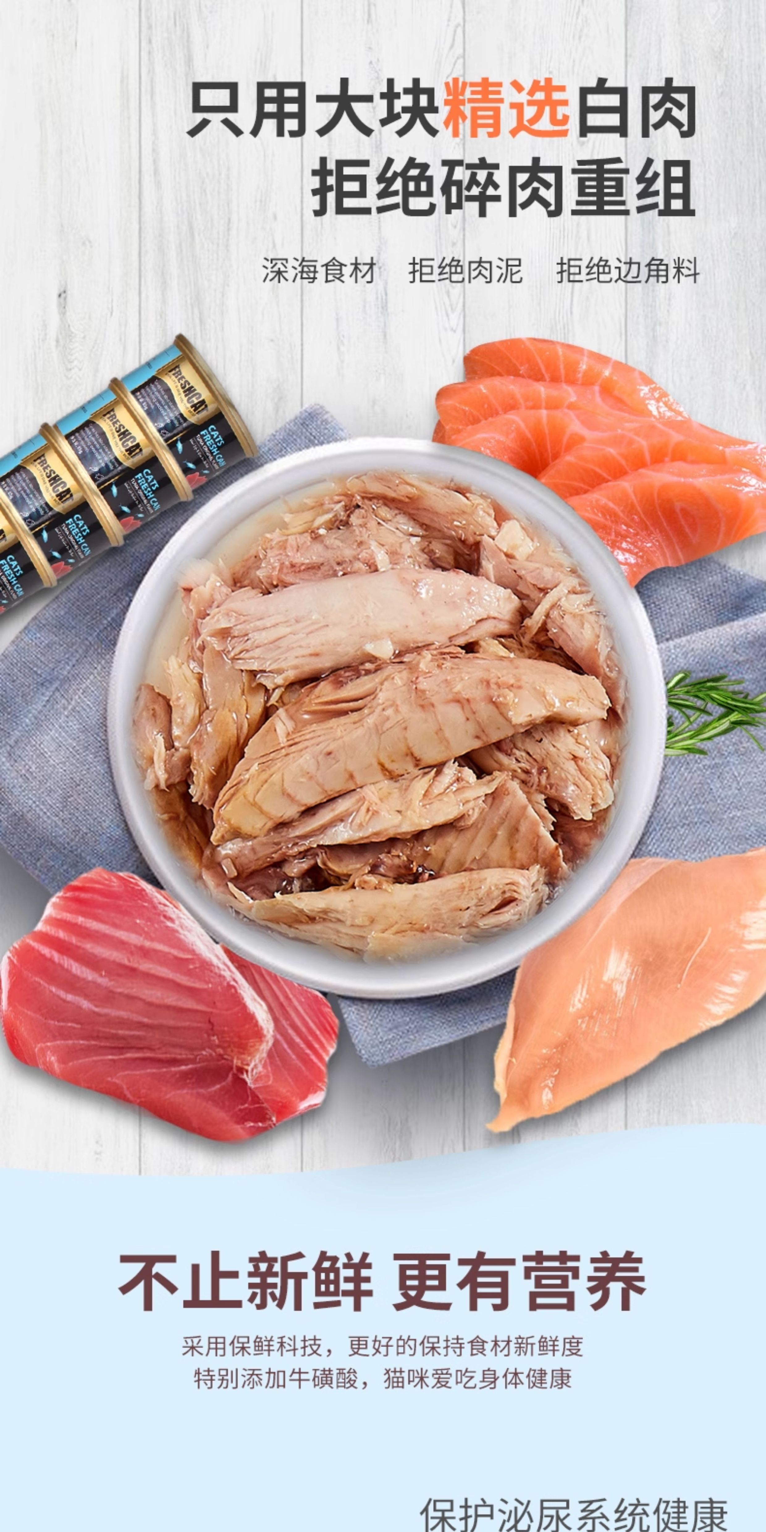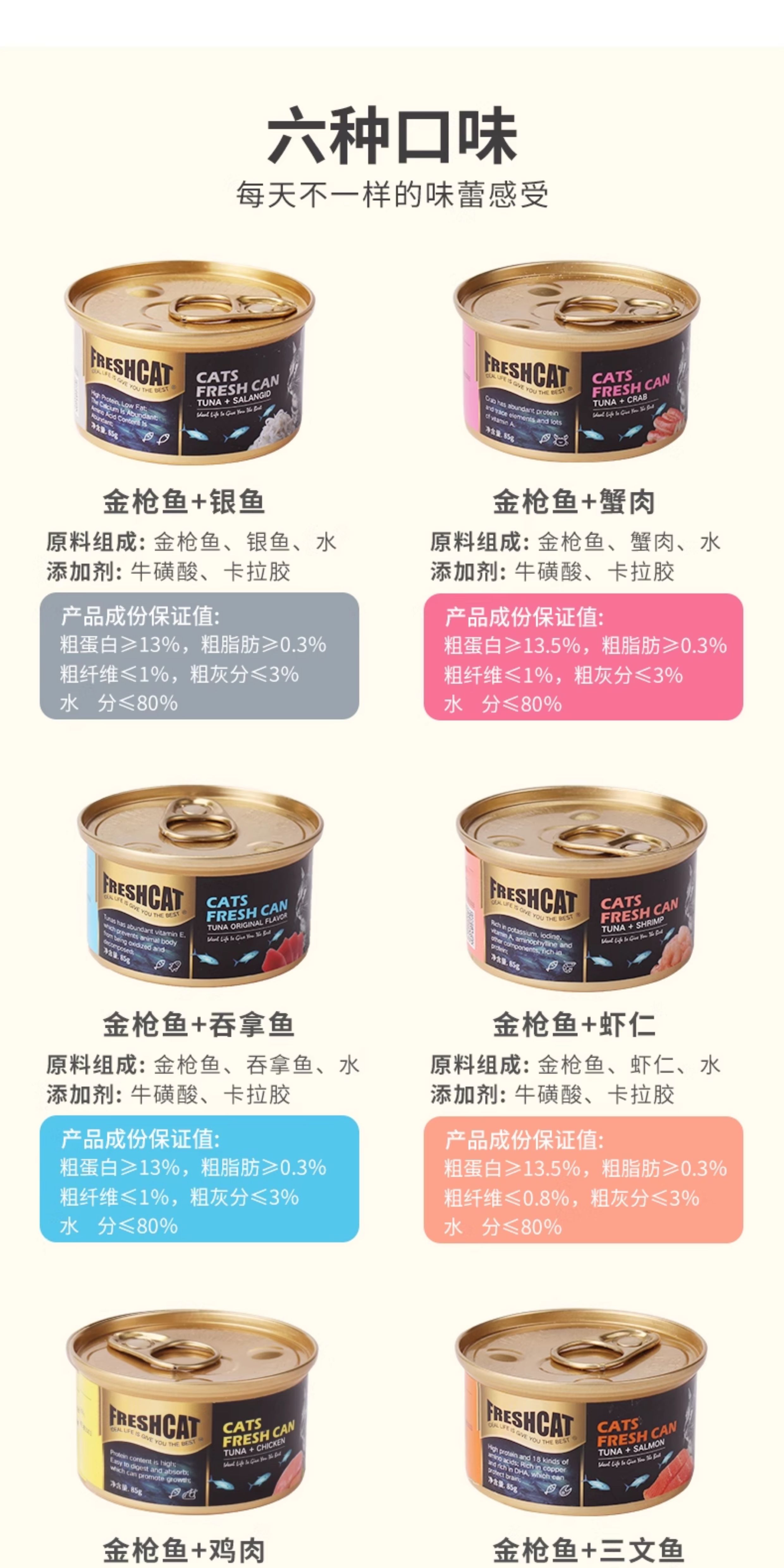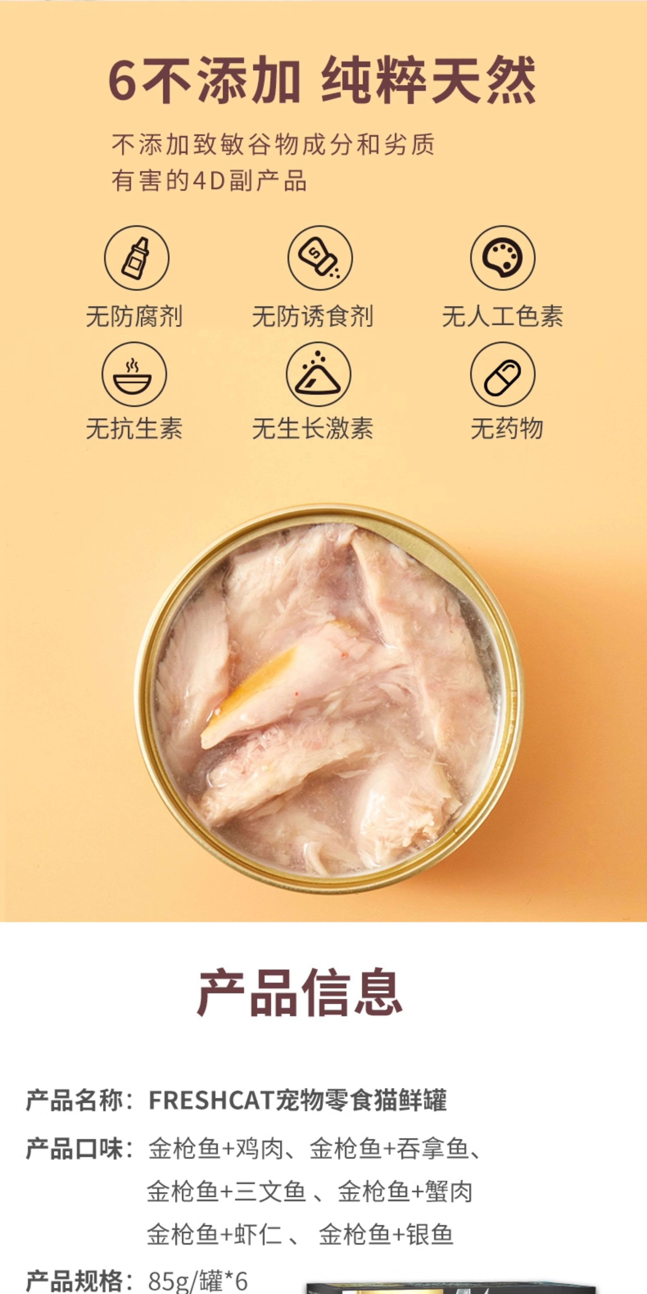 福瑞诗、金枪鱼猫罐头、85g*6、猫咪补水、零食罐、成猫三文鱼、补充营养