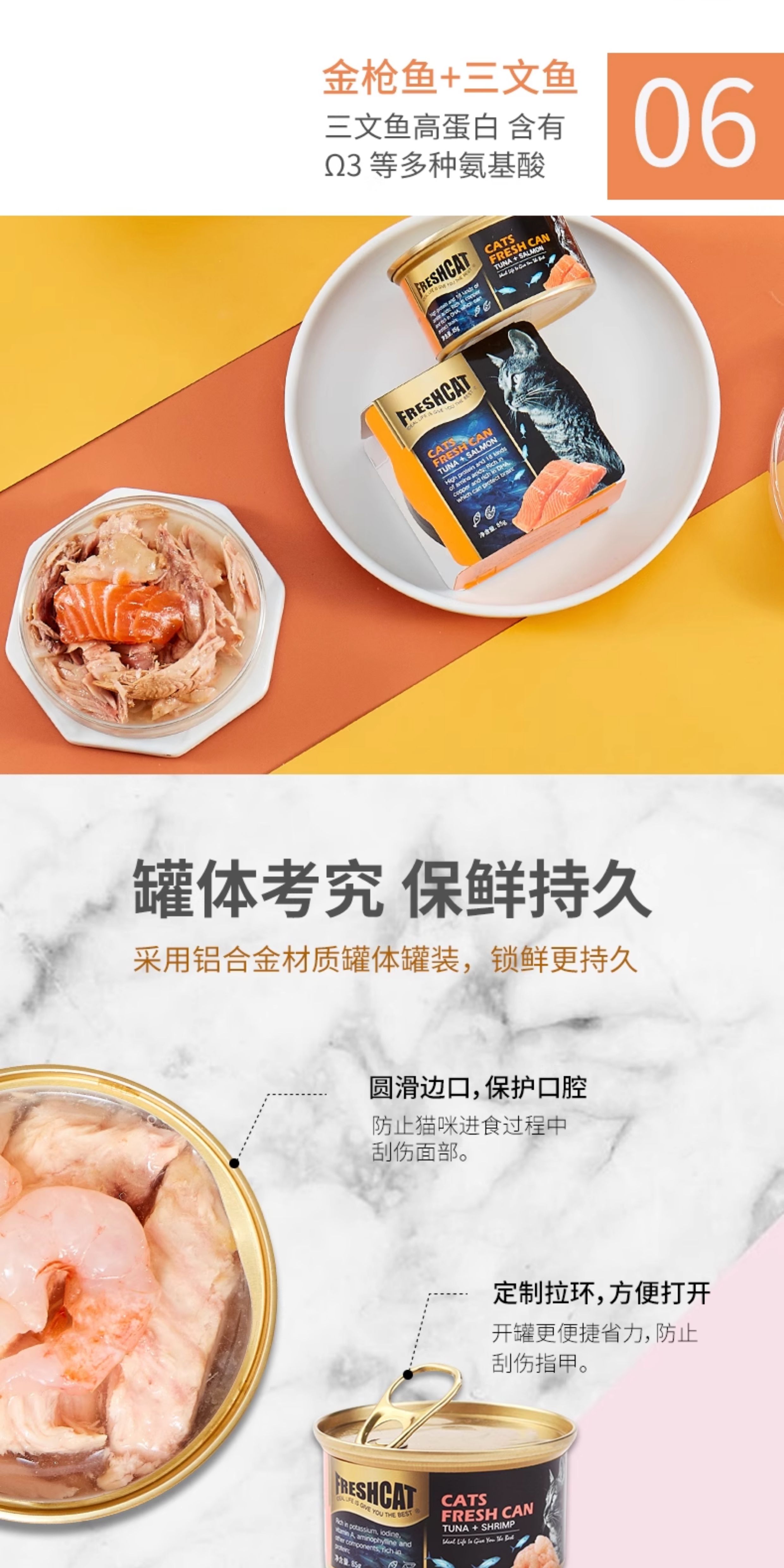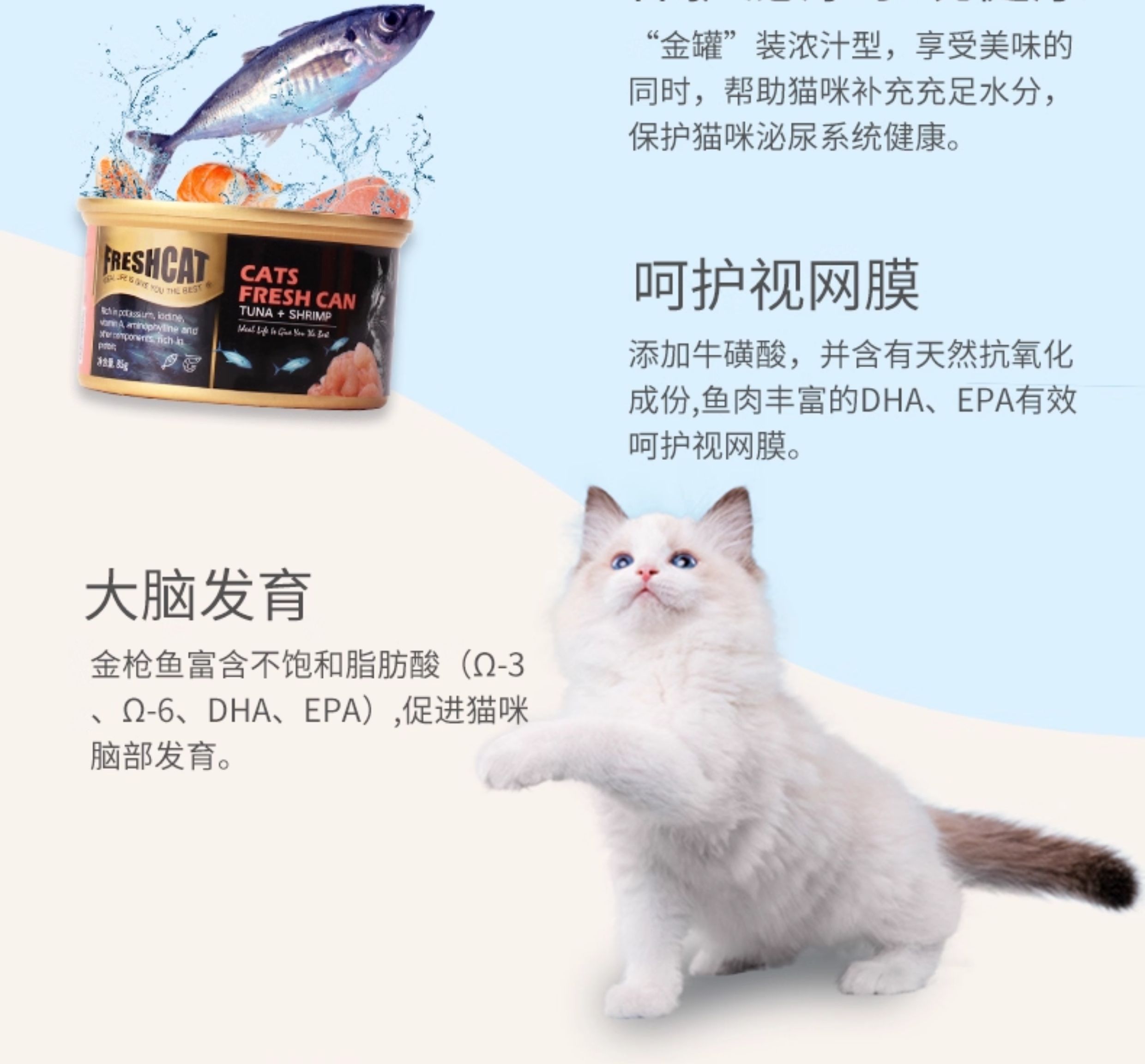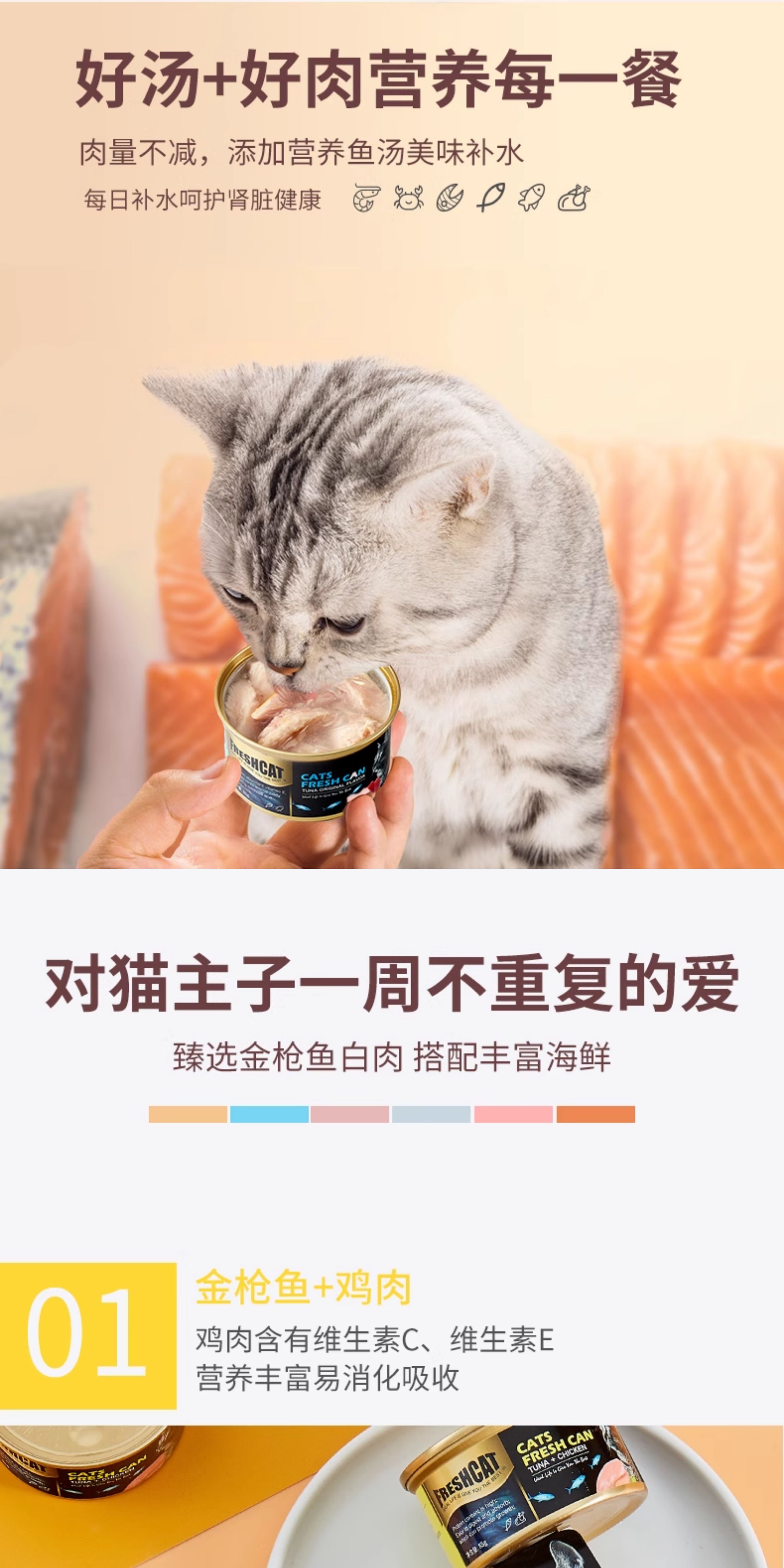 福瑞诗、金枪鱼猫罐头、85g*6、猫咪补水、零食罐、成猫三文鱼、补充营养