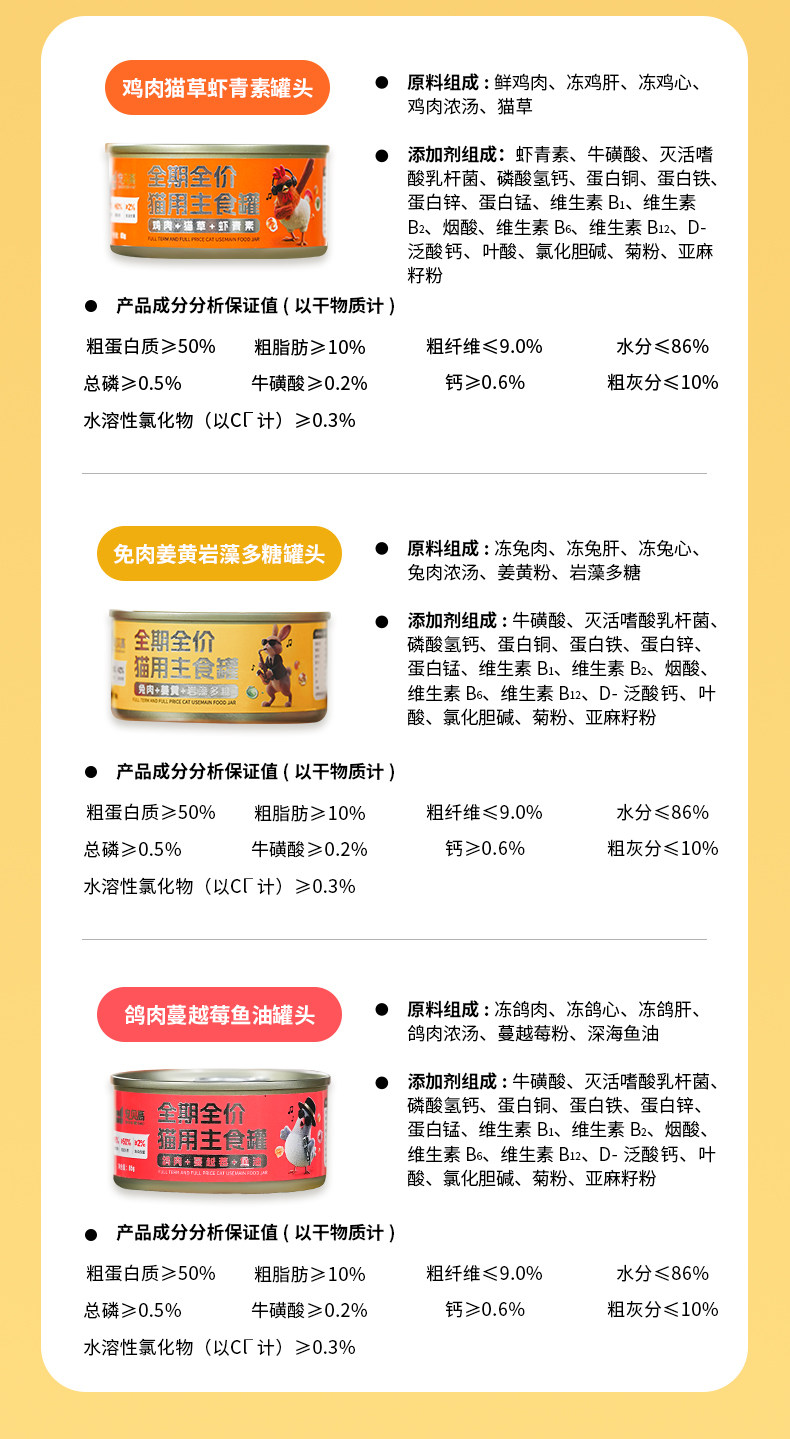 宠贝高三拼爆爆猫主食罐全期全价增肥发腮真肉满罐鸡肉鸽肉兔肉