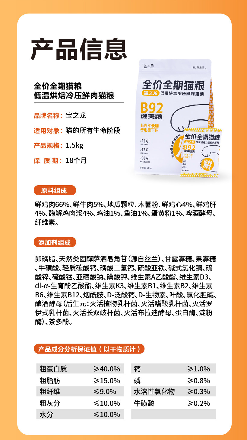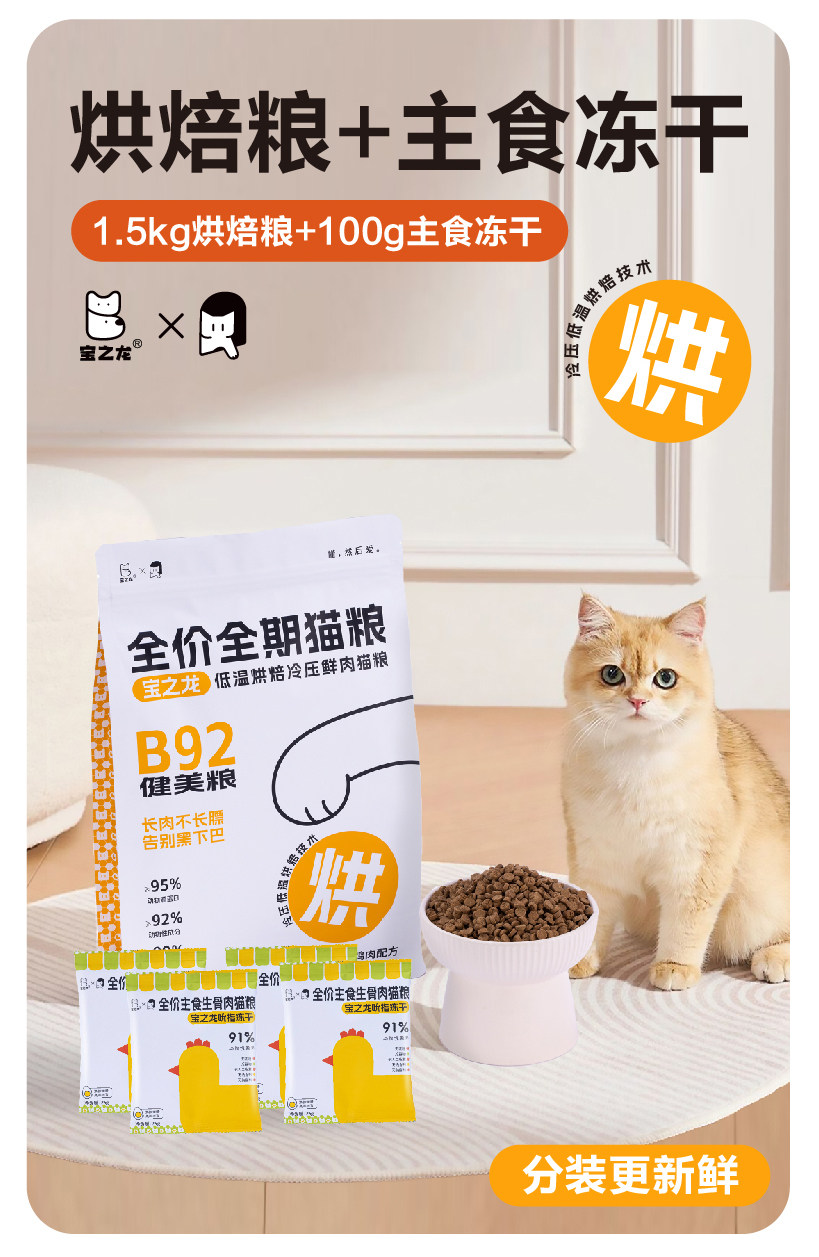 宝之龙 全价全期 低温烘焙 冷压鲜肉 猫粮 成幼猫 新客体验