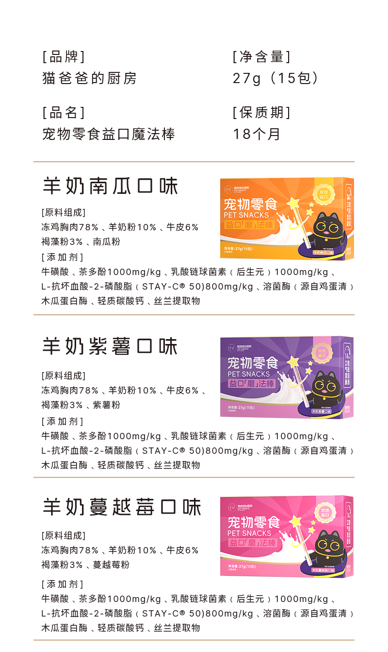 猫爸爸的厨房 益口磨法棒 羊奶 猫咪冻干 鸡肉零食 牙齿营养棒 成幼猫