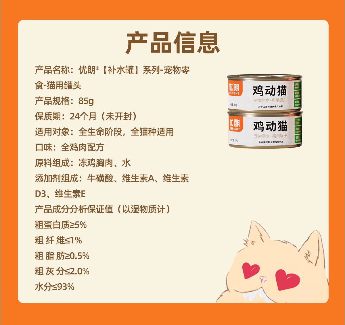 优朗新希望猫罐头猫零食罐头成幼猫营养主食白肉汤罐湿粮包85g*6
