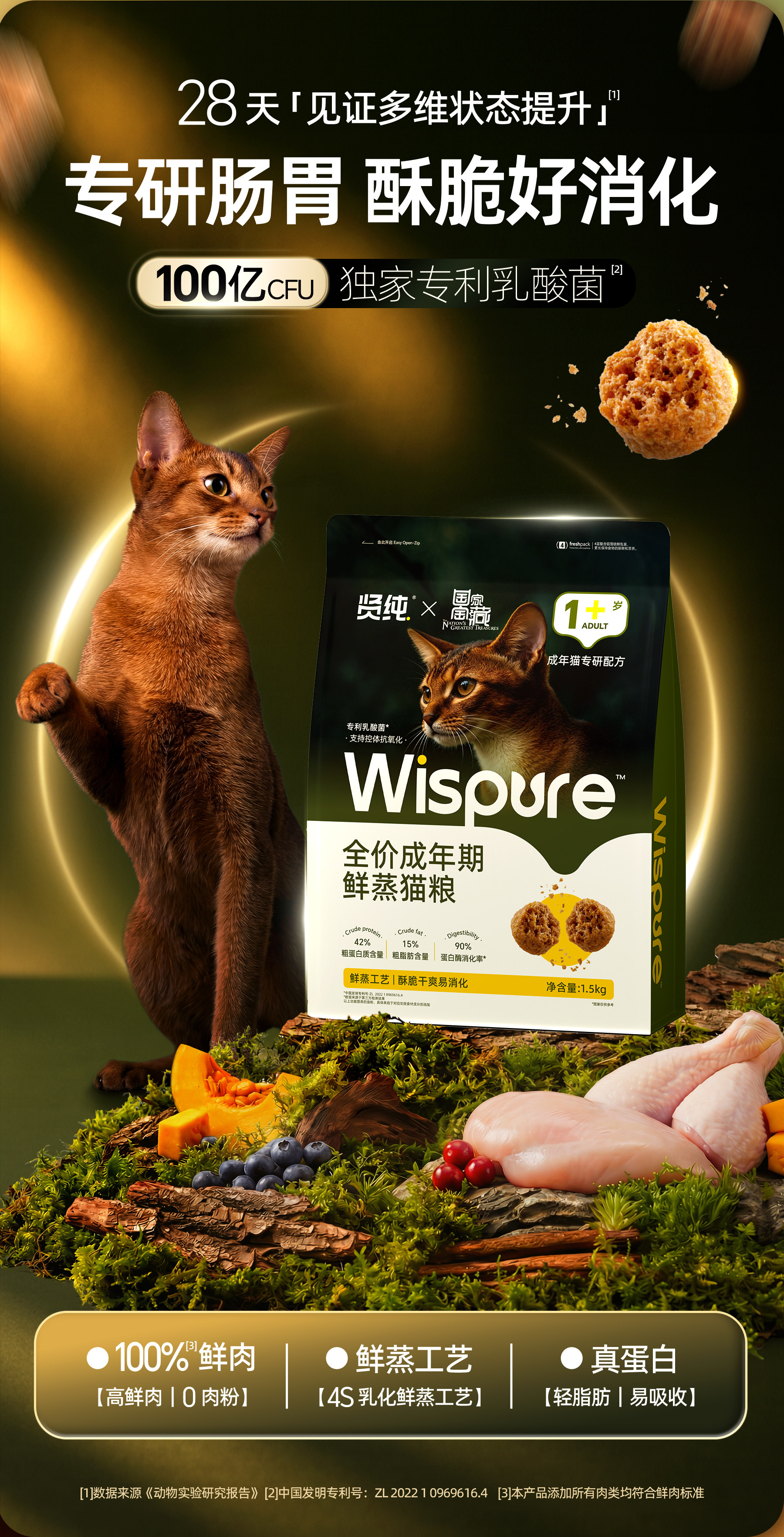国家宝藏、贤纯全价、成年猫粮、鲜蒸工艺、鲜肉营养、高蛋白