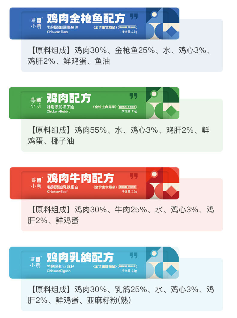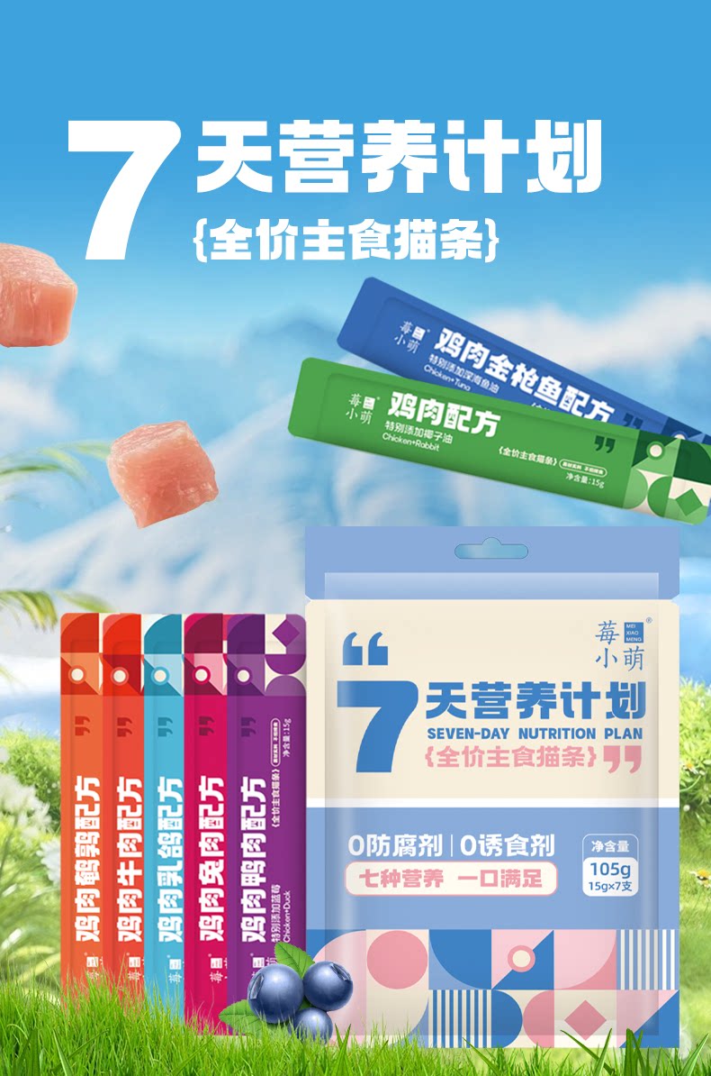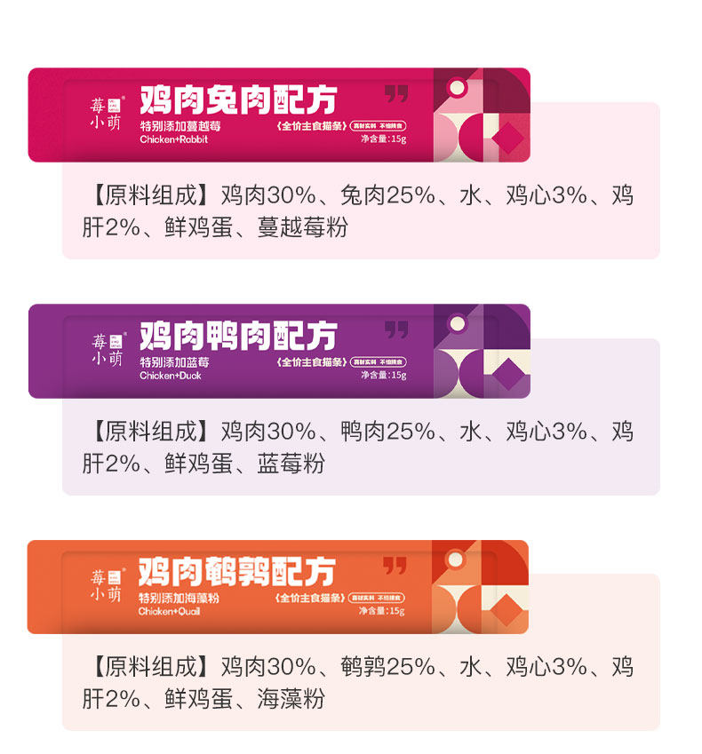 莓小萌、全价主食猫条、猫咪湿粮、成幼猫、营养美毛、呵护泌尿健康