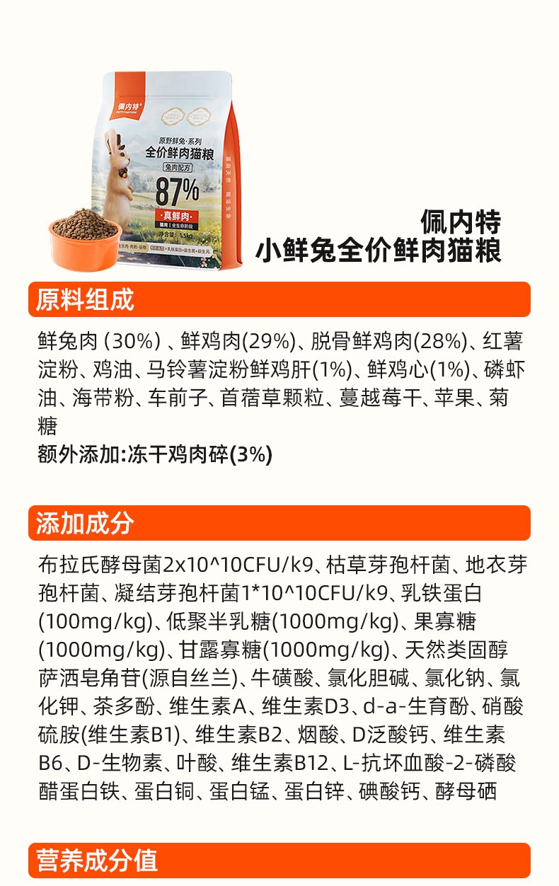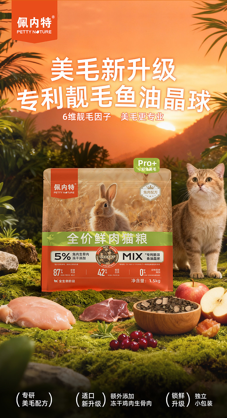【新升级美毛Pro+】佩内特全价鲜肉猫粮美毛冻干小鲜兔幼成猫通用