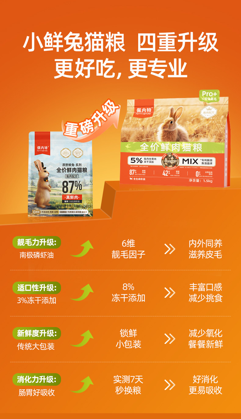 新升级美毛Pro+、佩内特、全价鲜肉猫粮、美毛冻干、小鲜兔、幼成猫通用