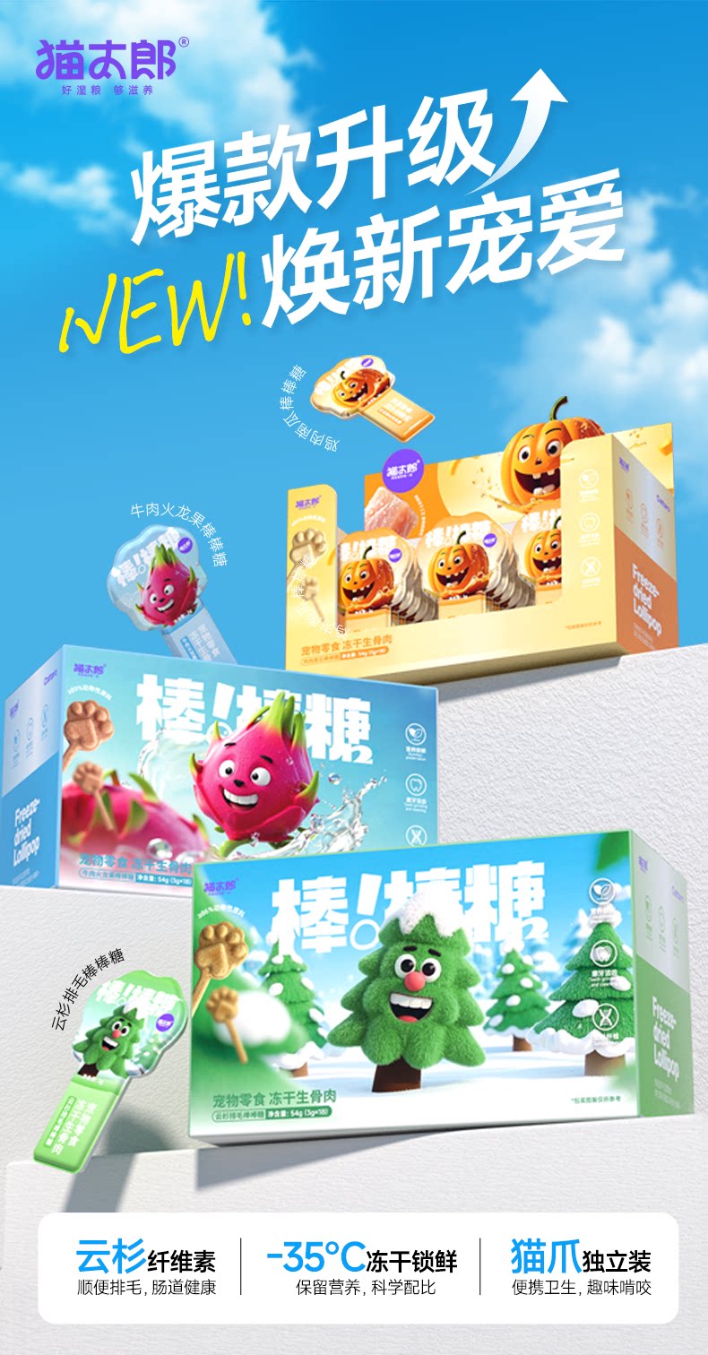 猫太郎、冻干生骨肉棒棒糖、猫咪零食、营养小饼干、成幼猫、磨牙洁齿