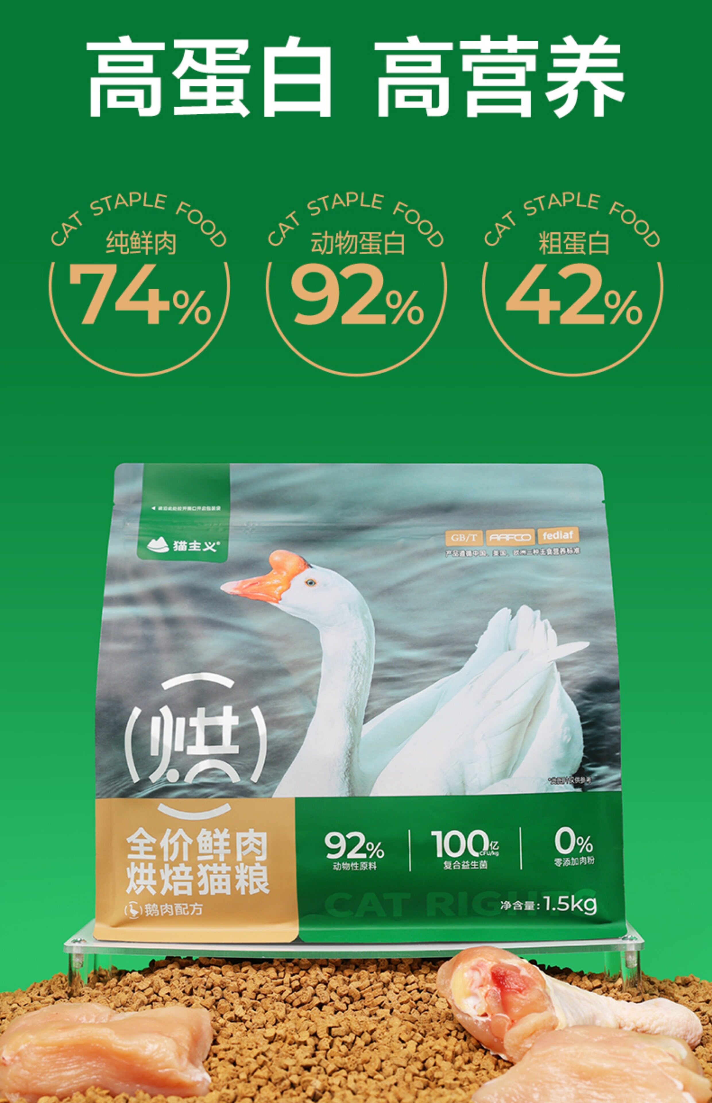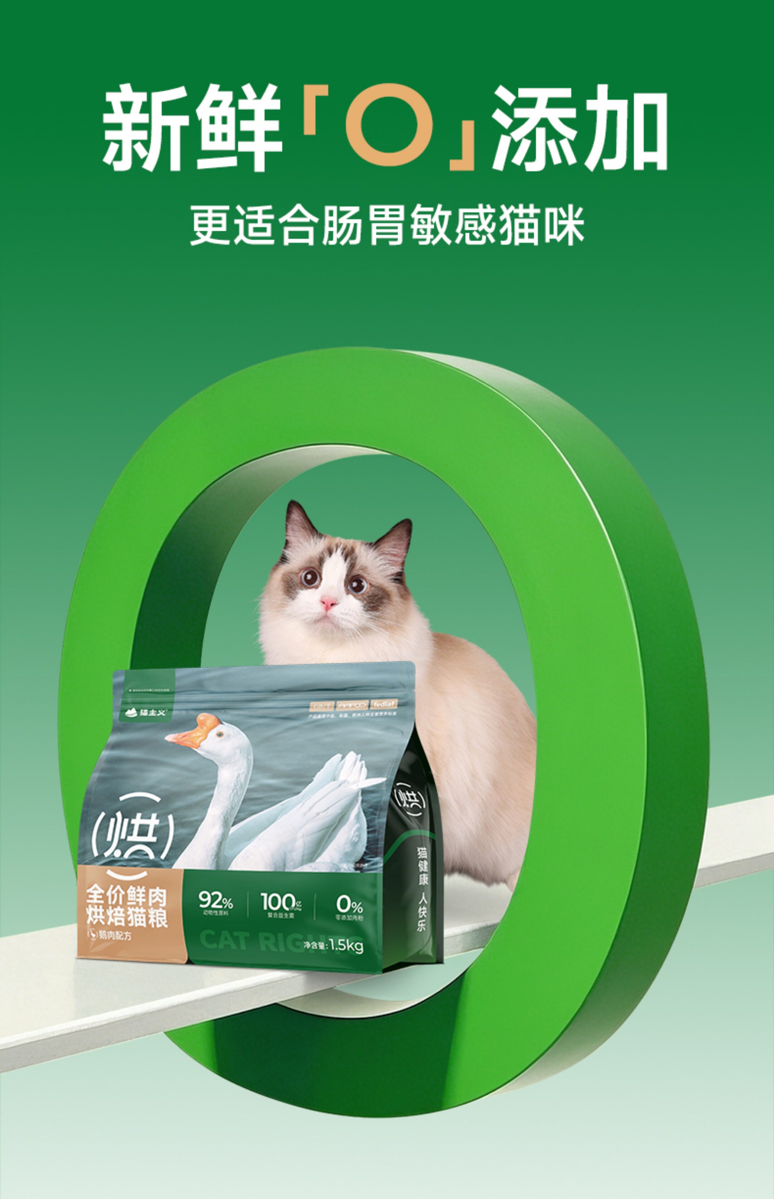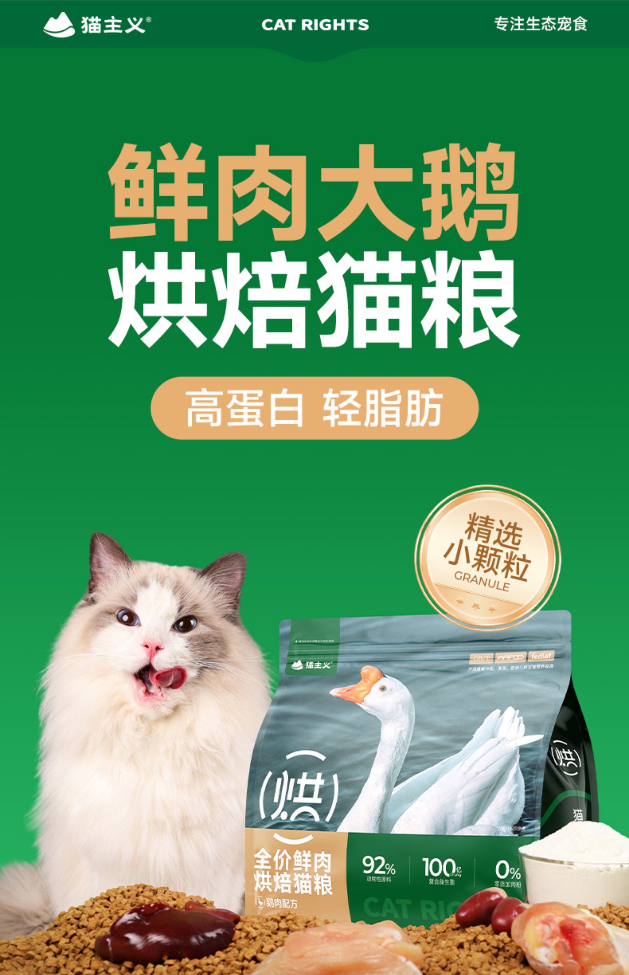 猫主义、鹅肉烘焙猫粮、鲜肉美毛、成幼猫通用、增肥发腮