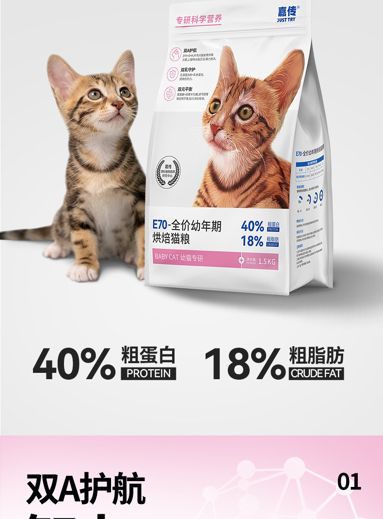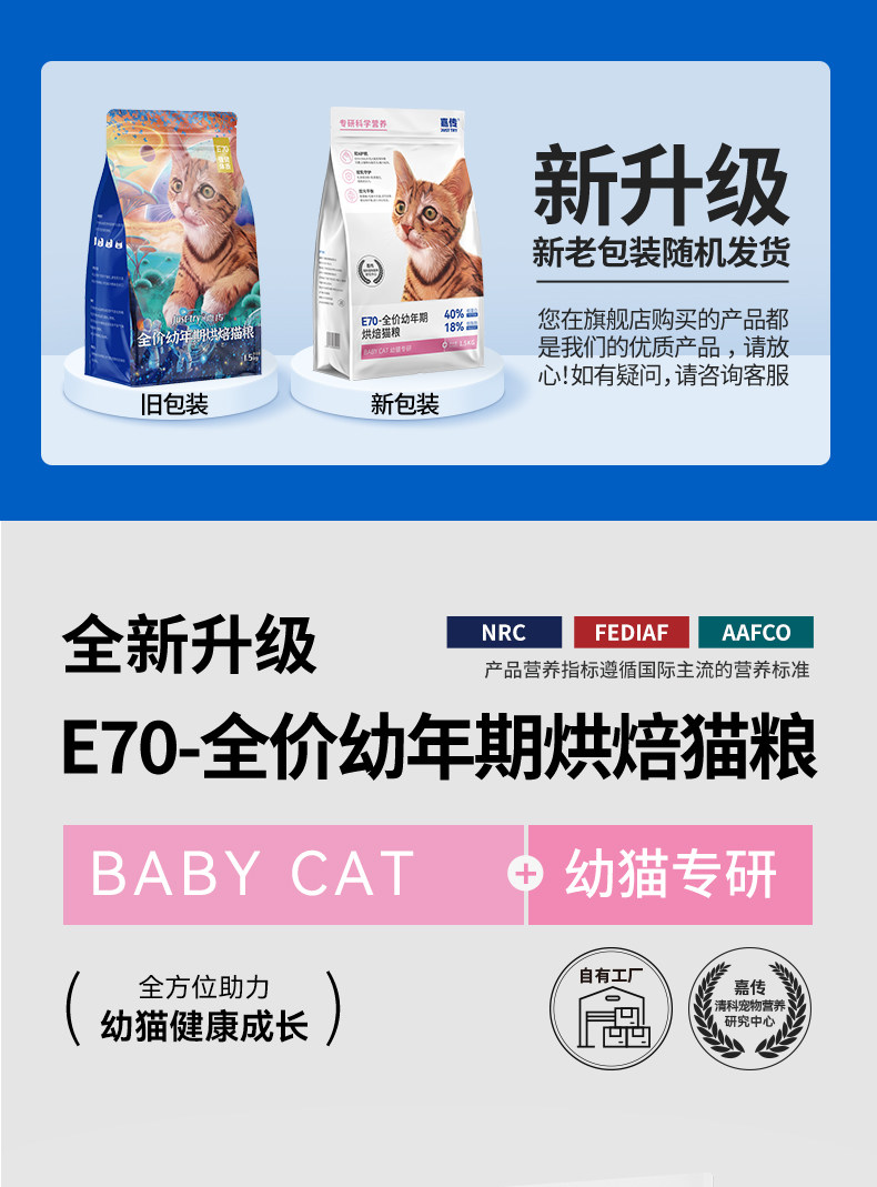 嘉传E70烘焙猫粮全价无谷幼猫2到12月蓝猫布偶幼猫孕猫专用猫主粮