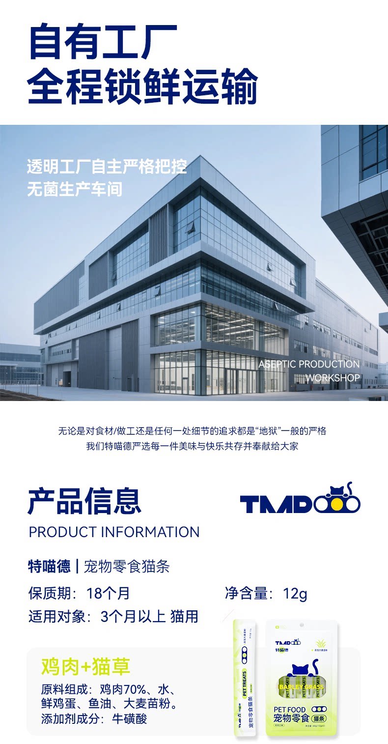 特喵德猫条主食级鸡肉猫草三文鱼金枪鱼三种口味互动奖励补水全价
