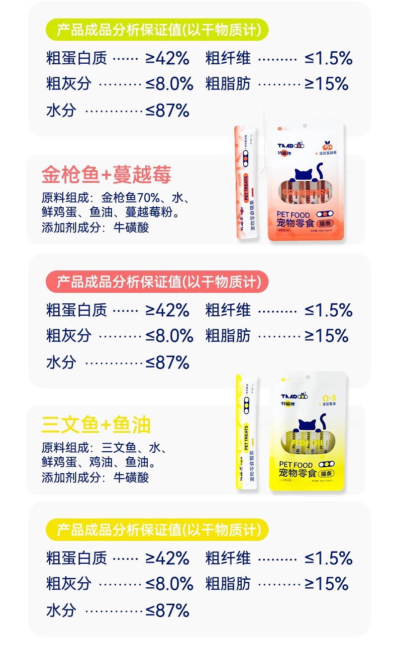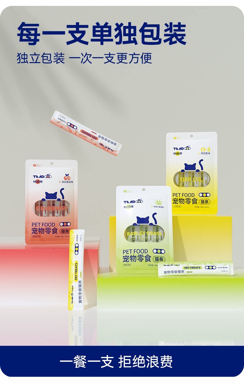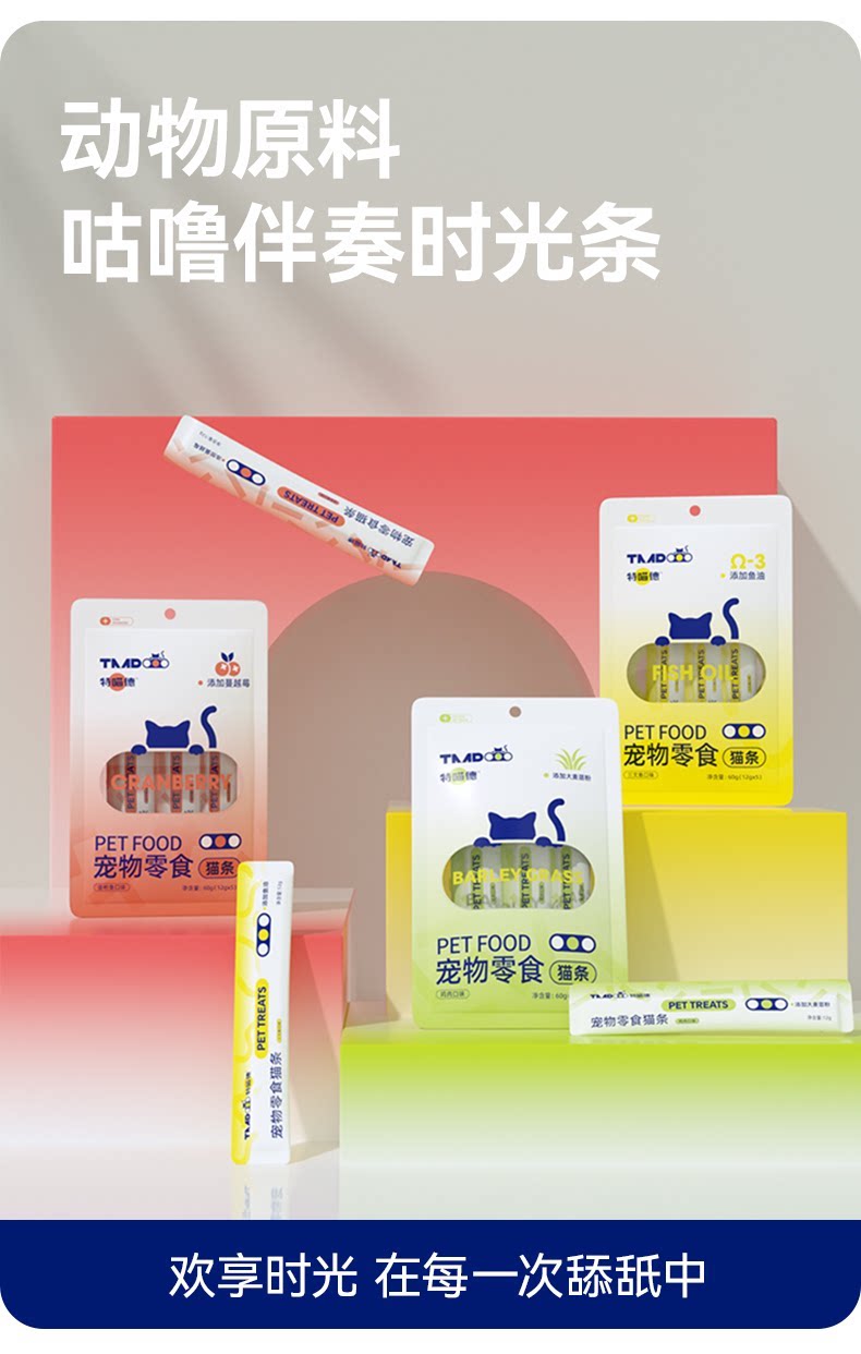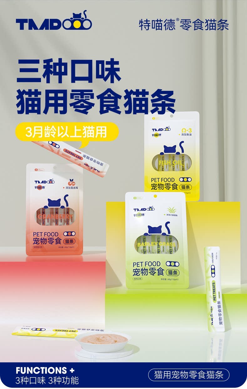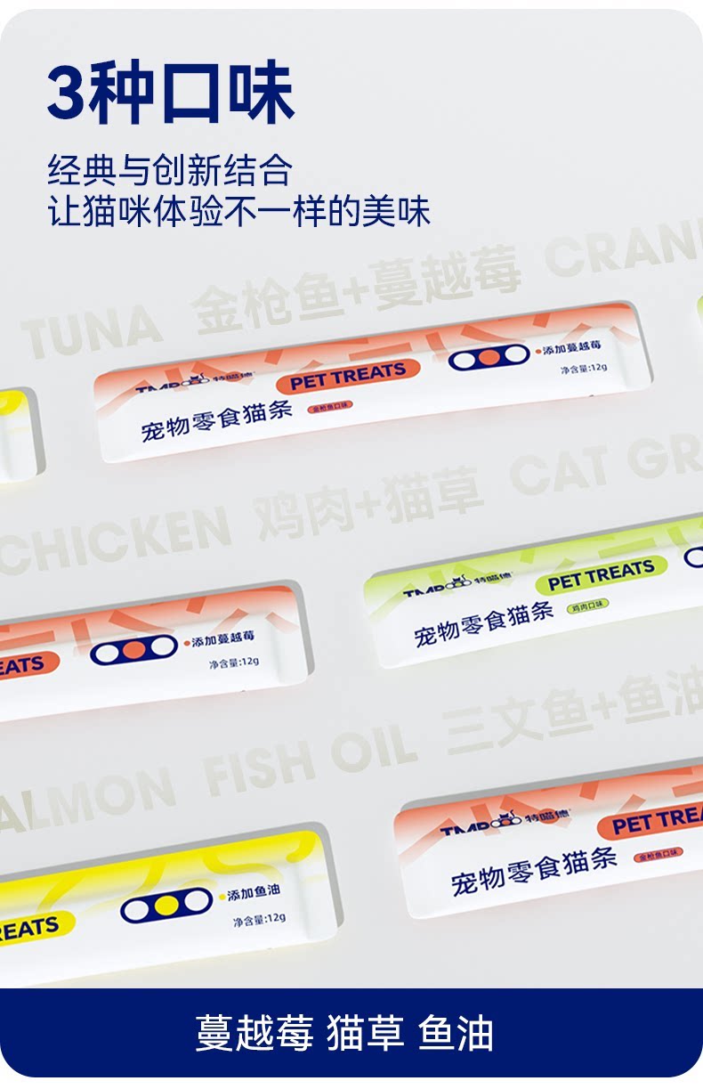 特喵德猫条、主食级、三种口味、互动奖励、补水全价