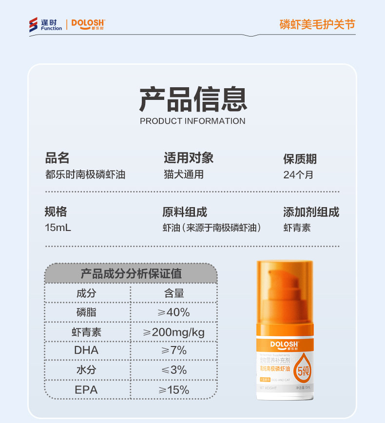 都乐时 40%磷脂 宠物磷虾油 虾青素 omega3 犬猫通用