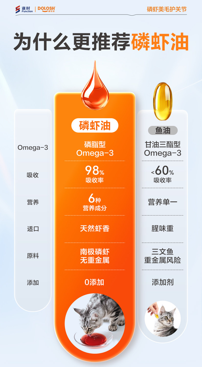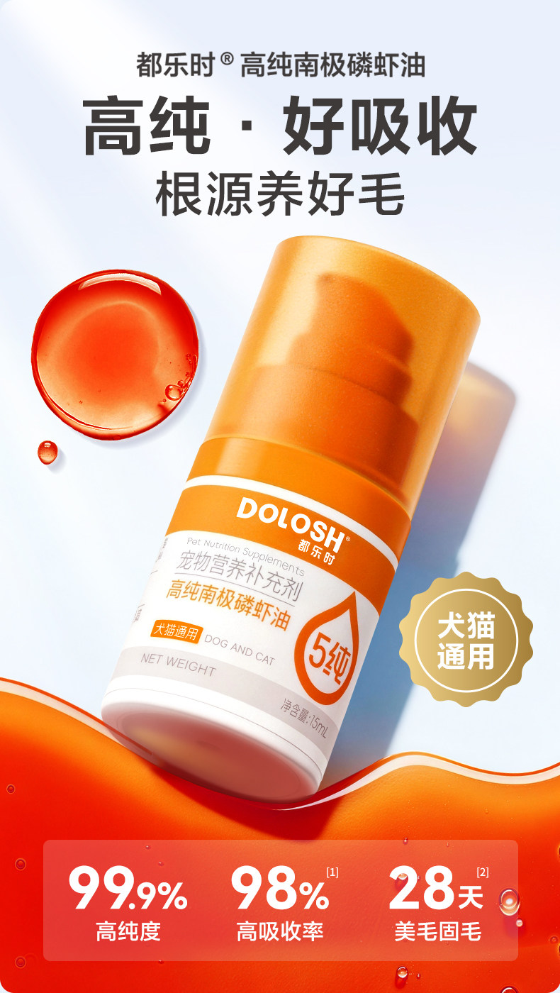 都乐时40%磷脂宠物磷虾油虾青素o-mega3犬猫通用美毛护肤少掉毛