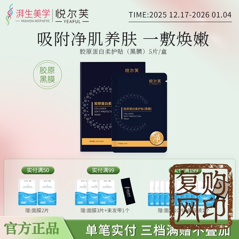 悦尔芙胶原蛋白柔护贴深层补水保湿活性碳膜布男女补水保湿小黑膜