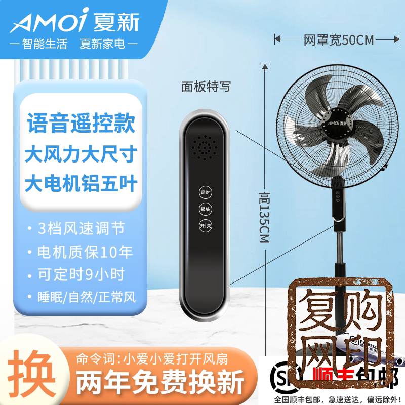 夏新落地扇:69.9元带走遥控+摇头+大风力!