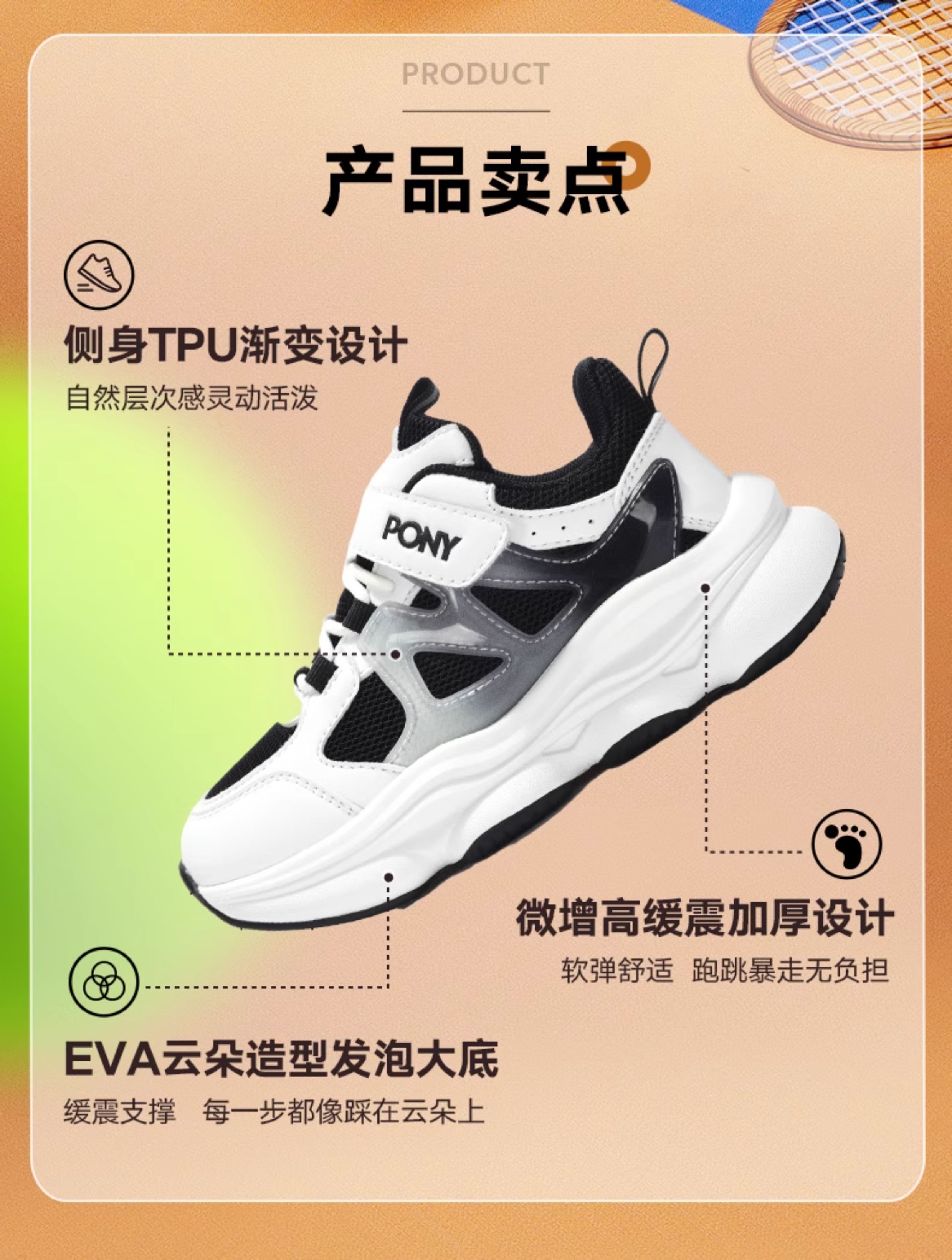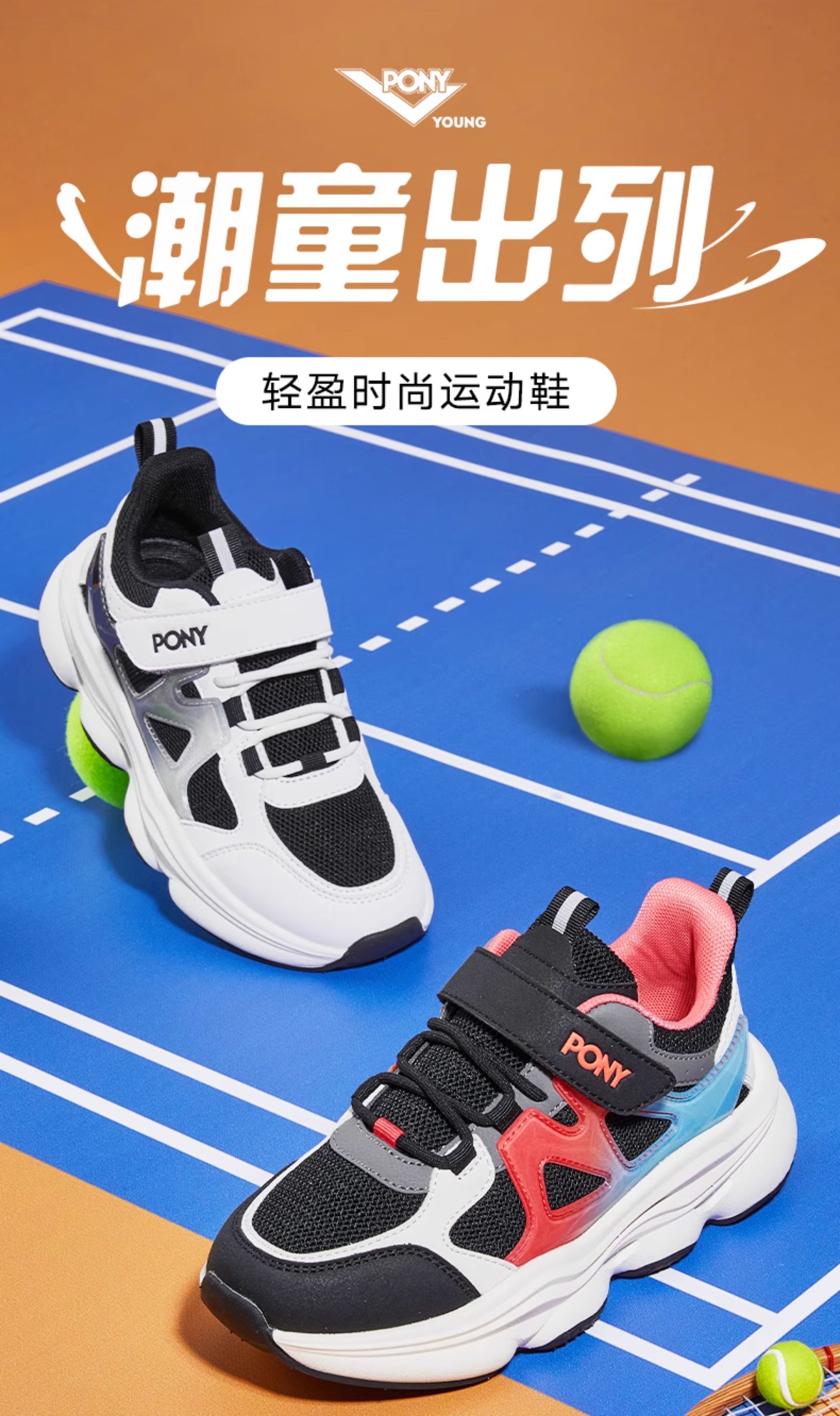 pony儿童运动鞋、童鞋、男童女童、秋季、轻便透气、跑步鞋、学生运动鞋、网鞋