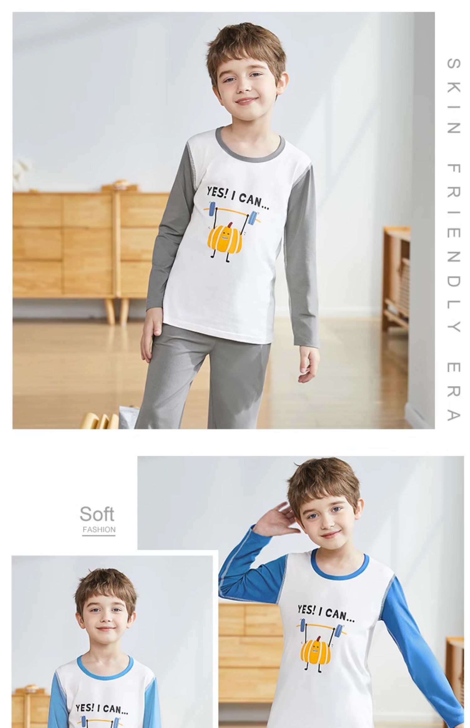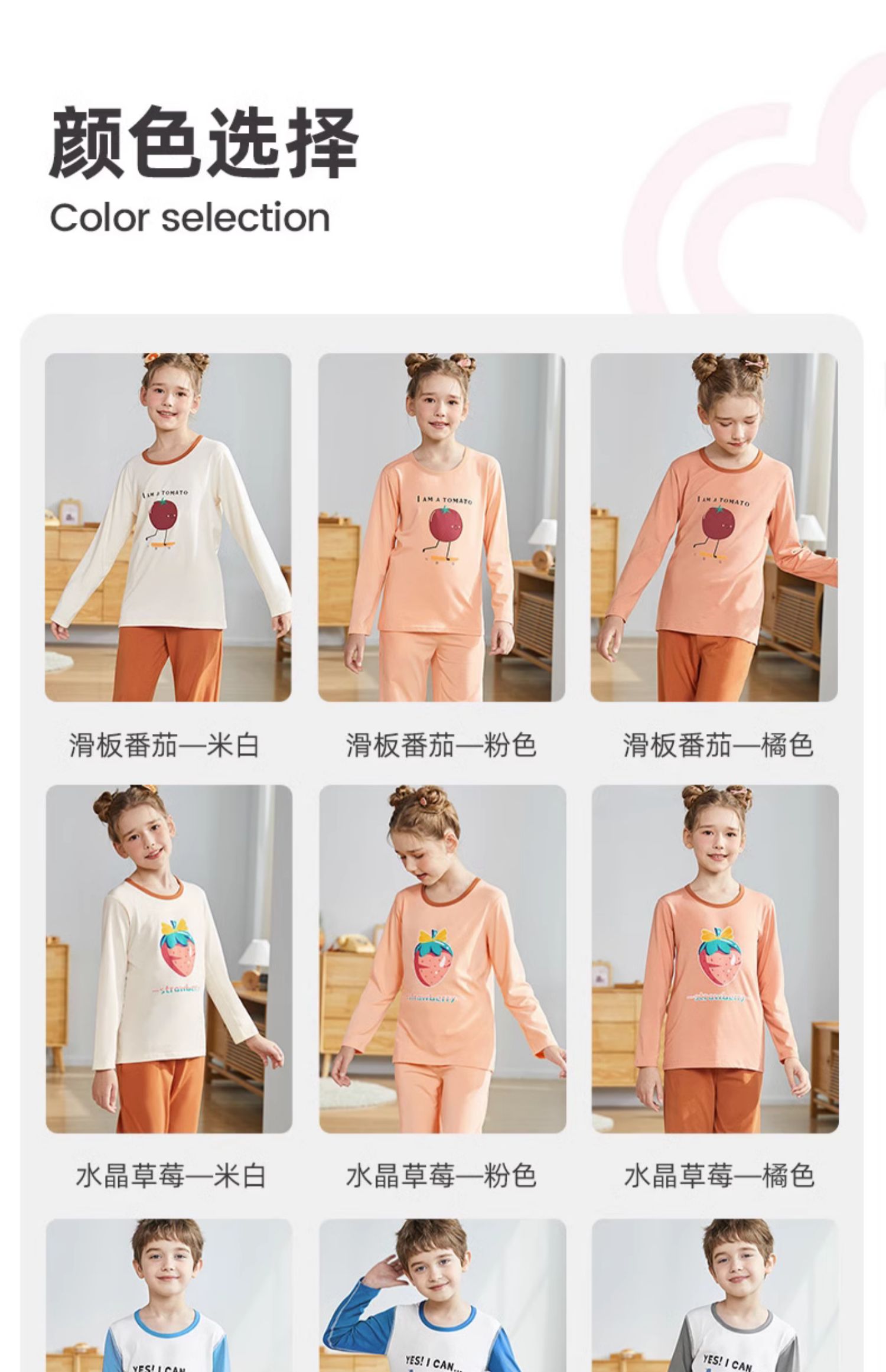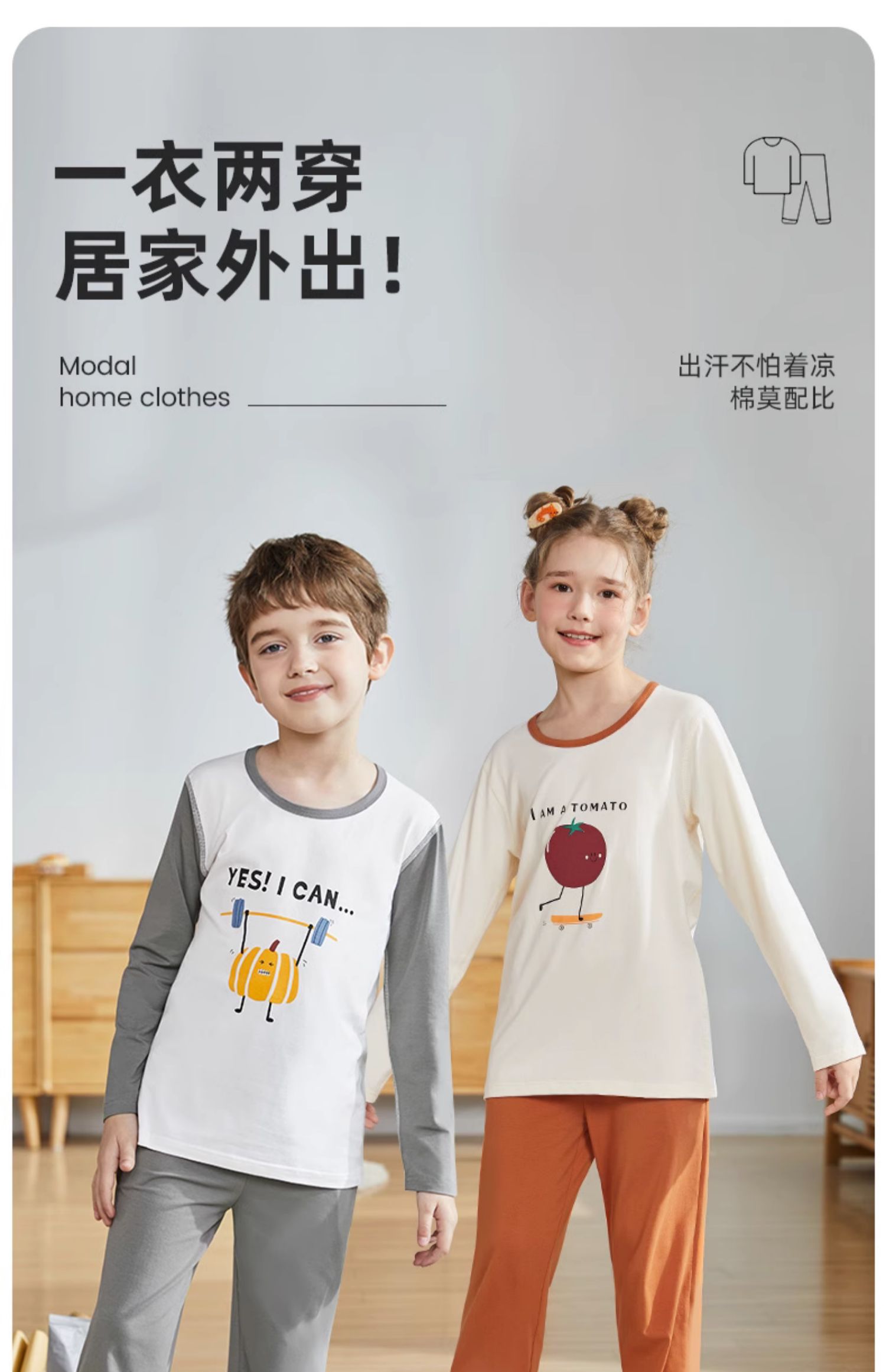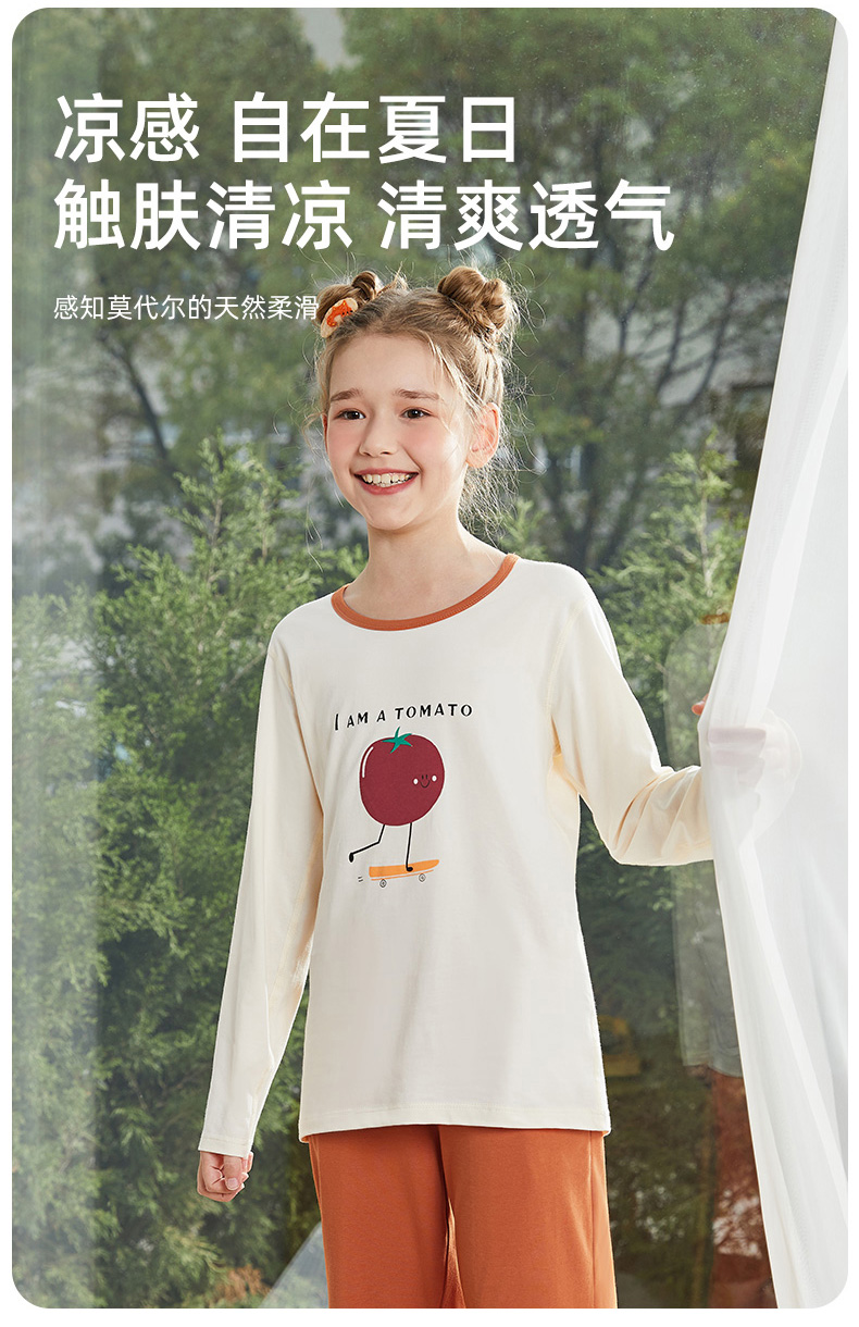 顶瓜瓜、儿童莫代尔睡衣、男童女童、春秋家居服、中大童、空调套装、夏季薄款