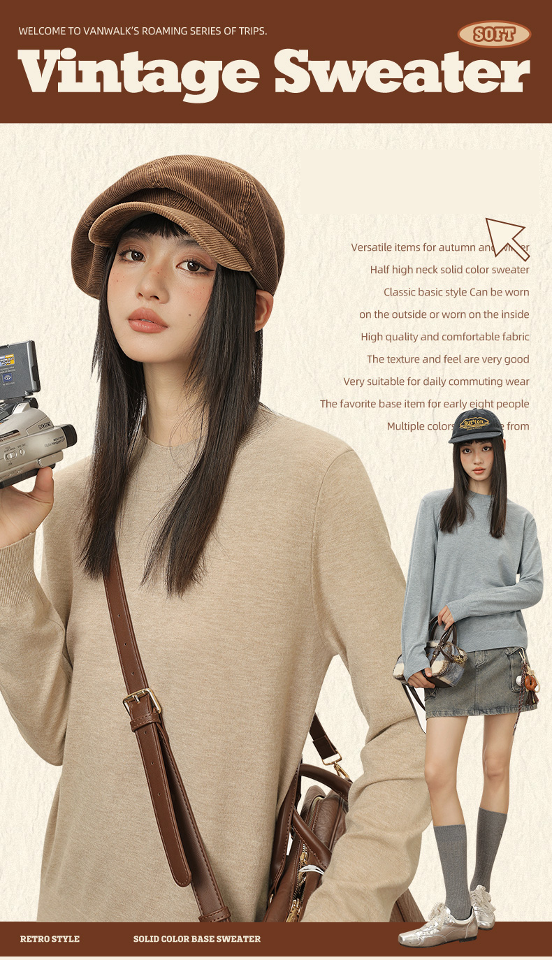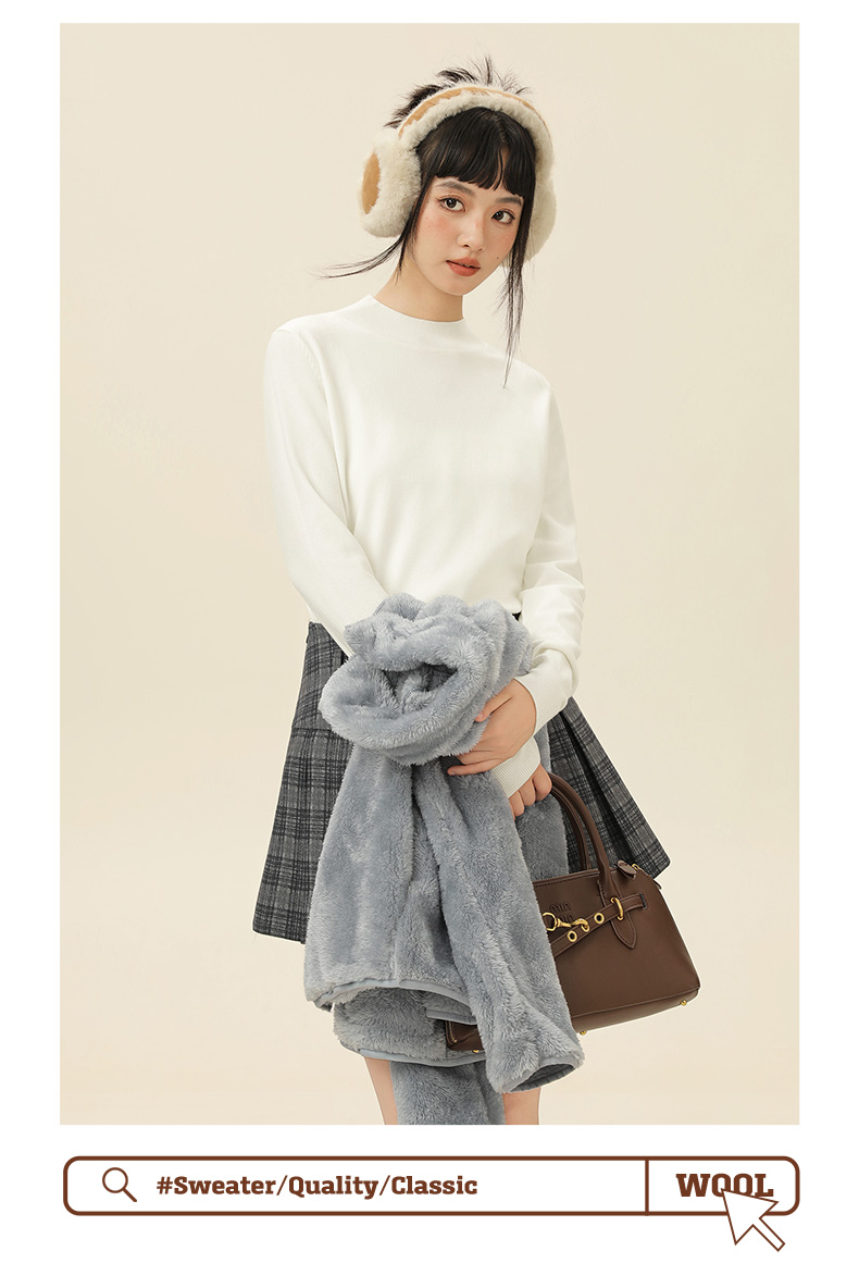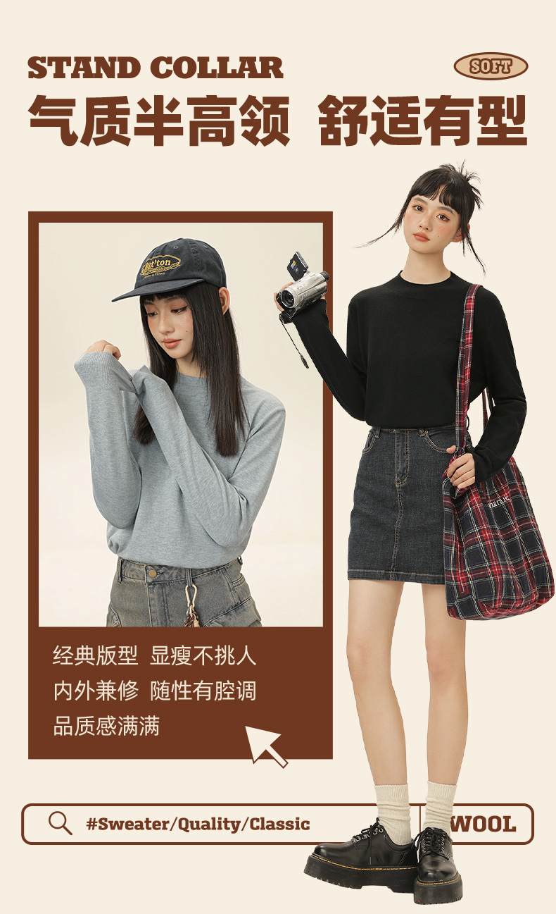 都市丽人、半高领毛衣、女款、2025新款、加厚显瘦、内搭打底衫、白色上衣