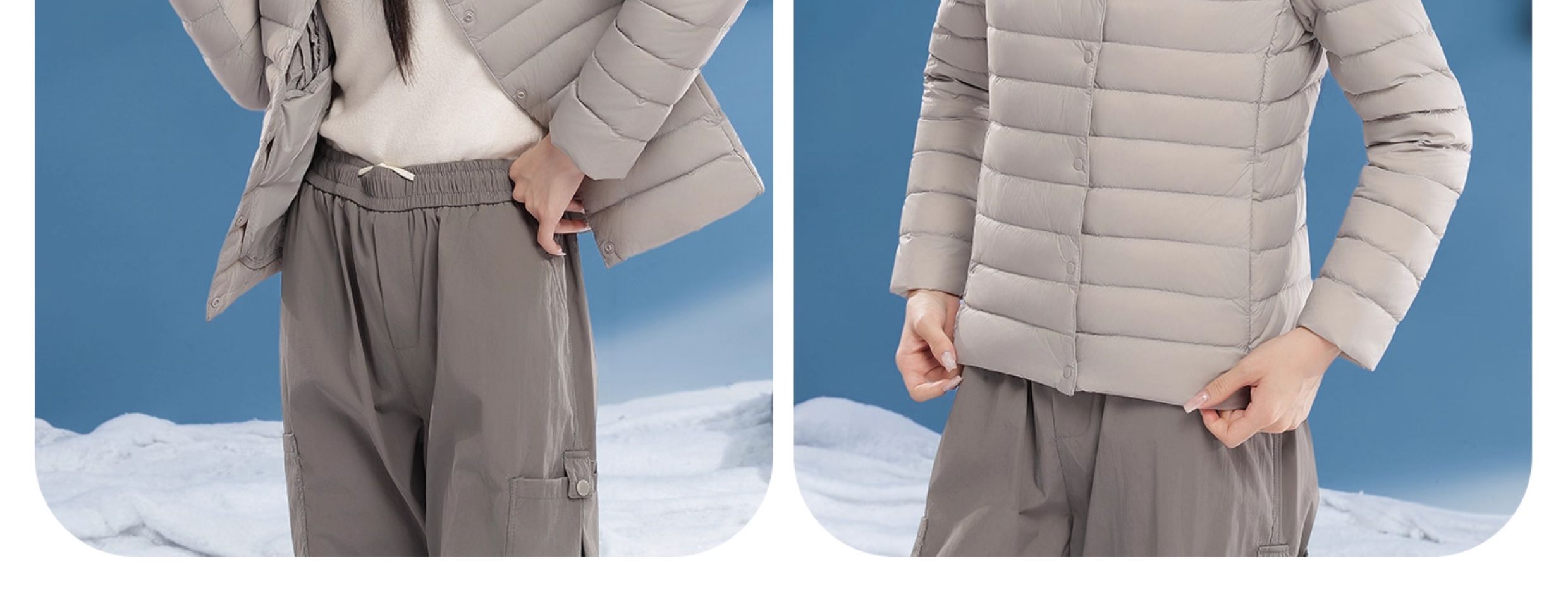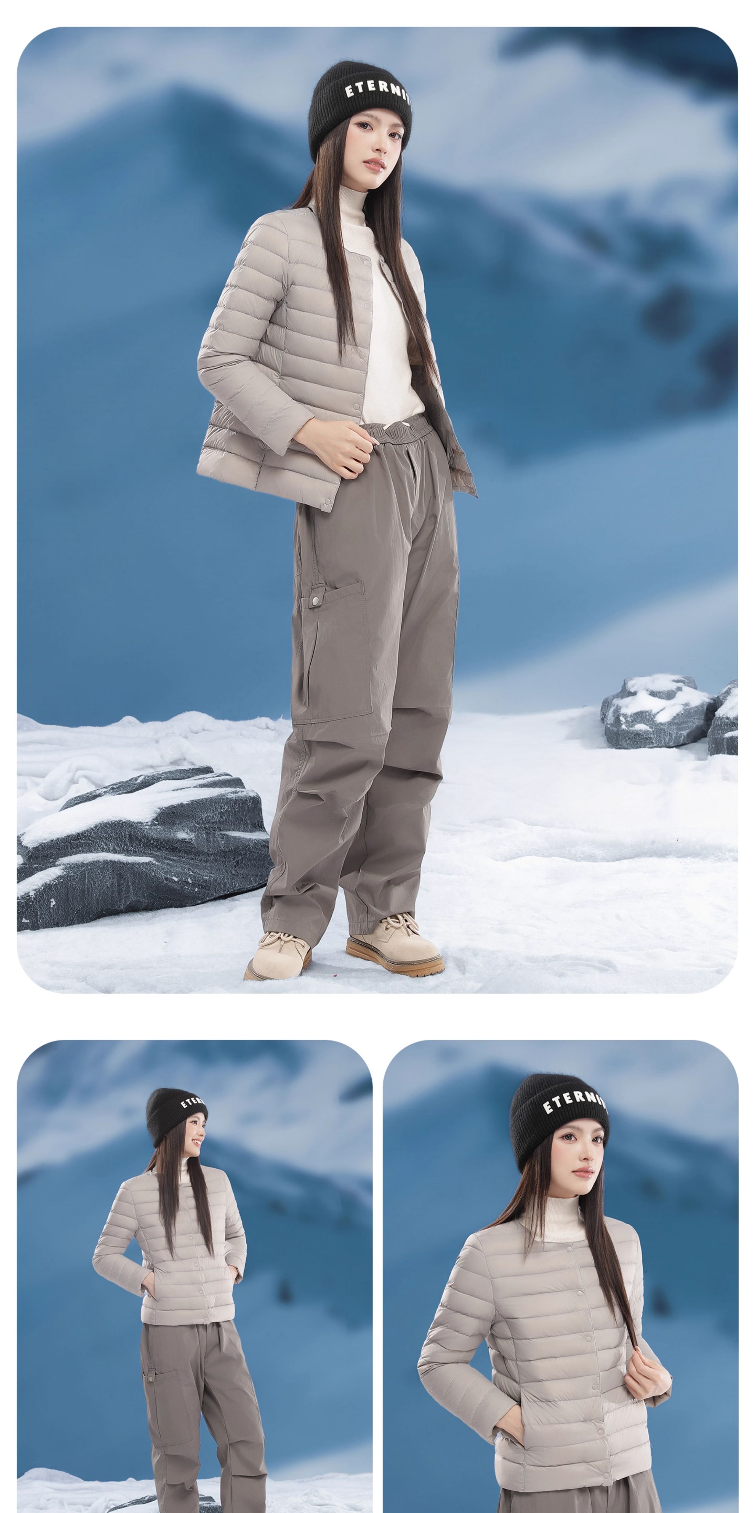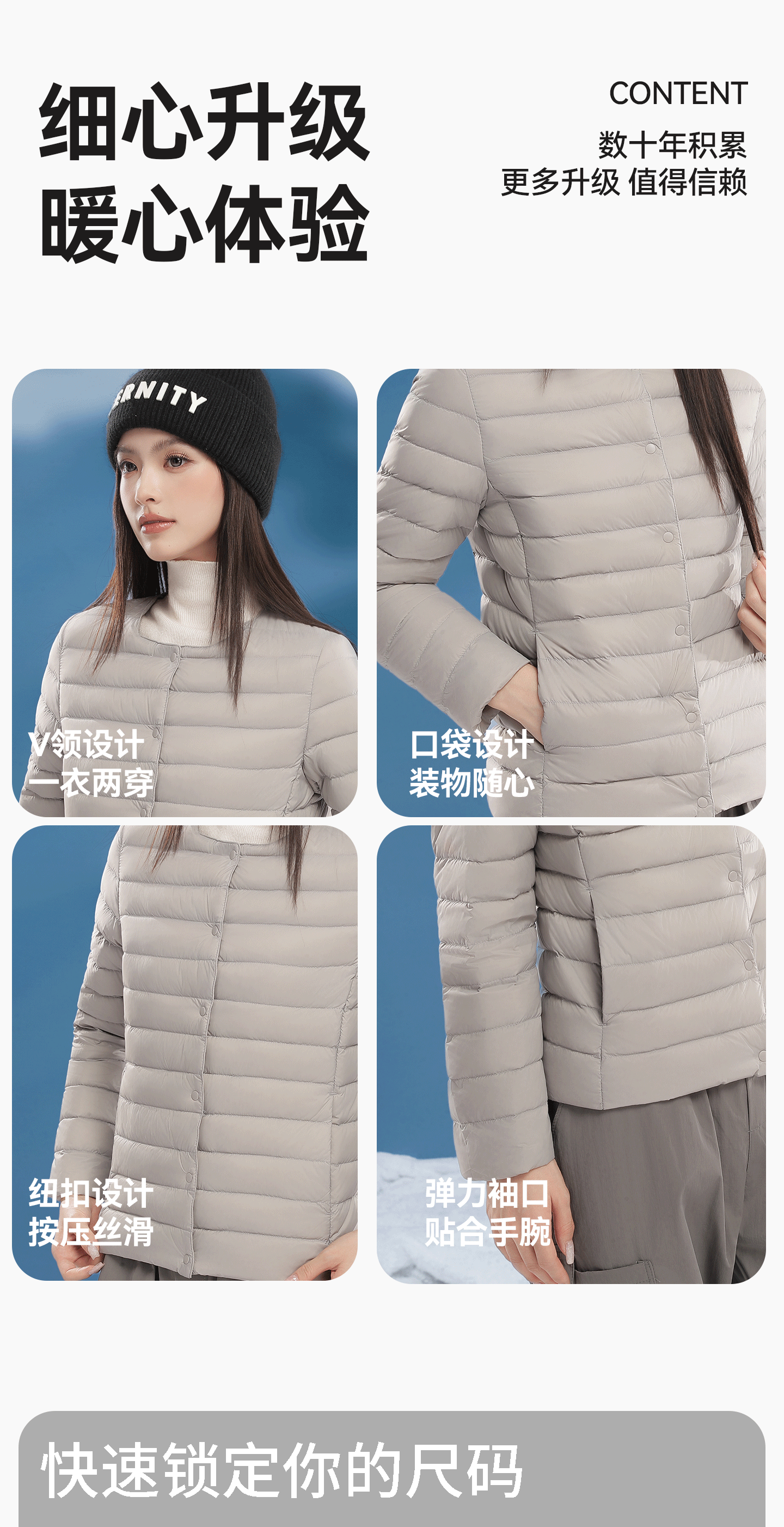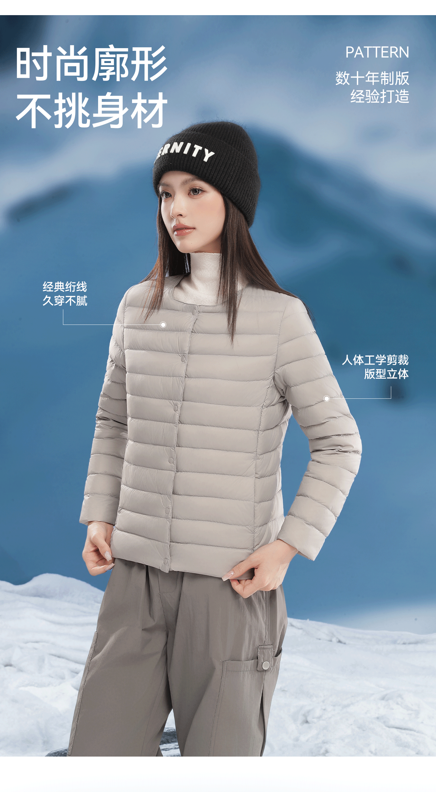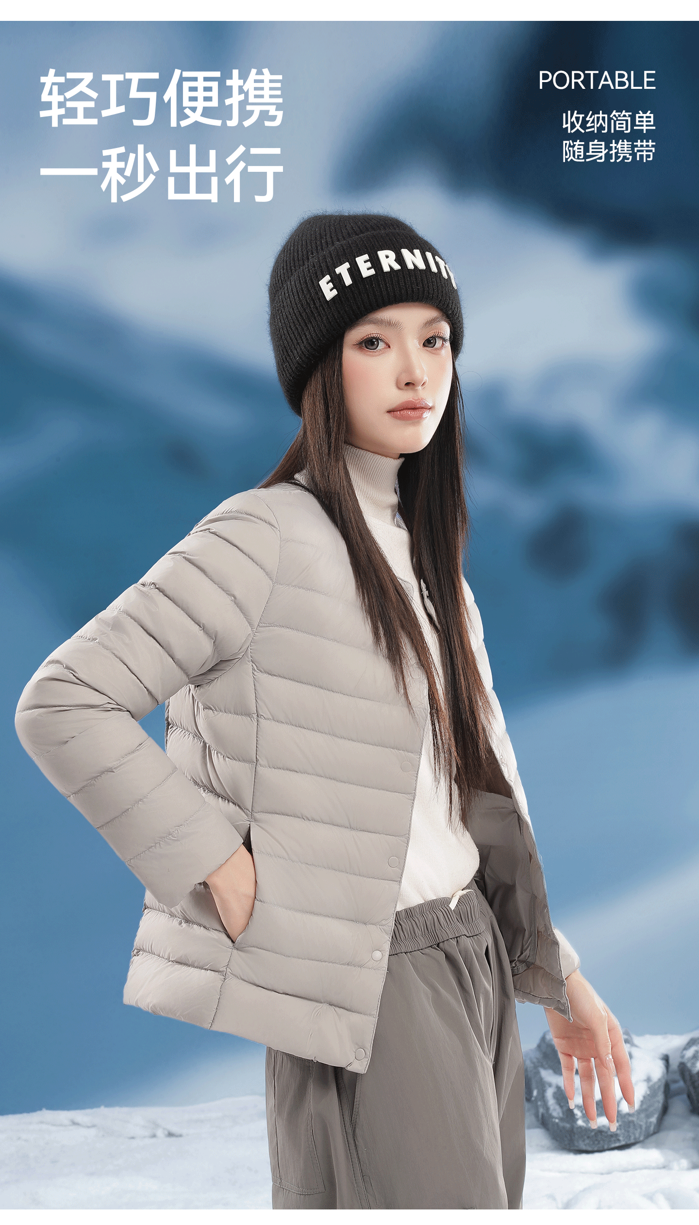拉夏贝尔轻薄羽绒服女士短款冬季韩版修身圆领无领内胆保暖外套